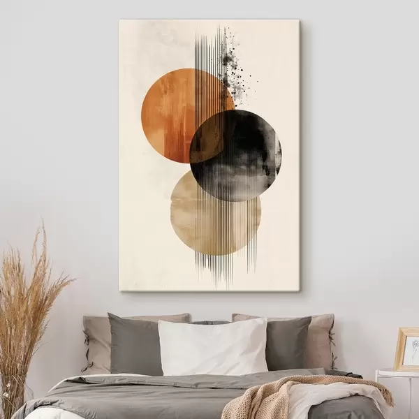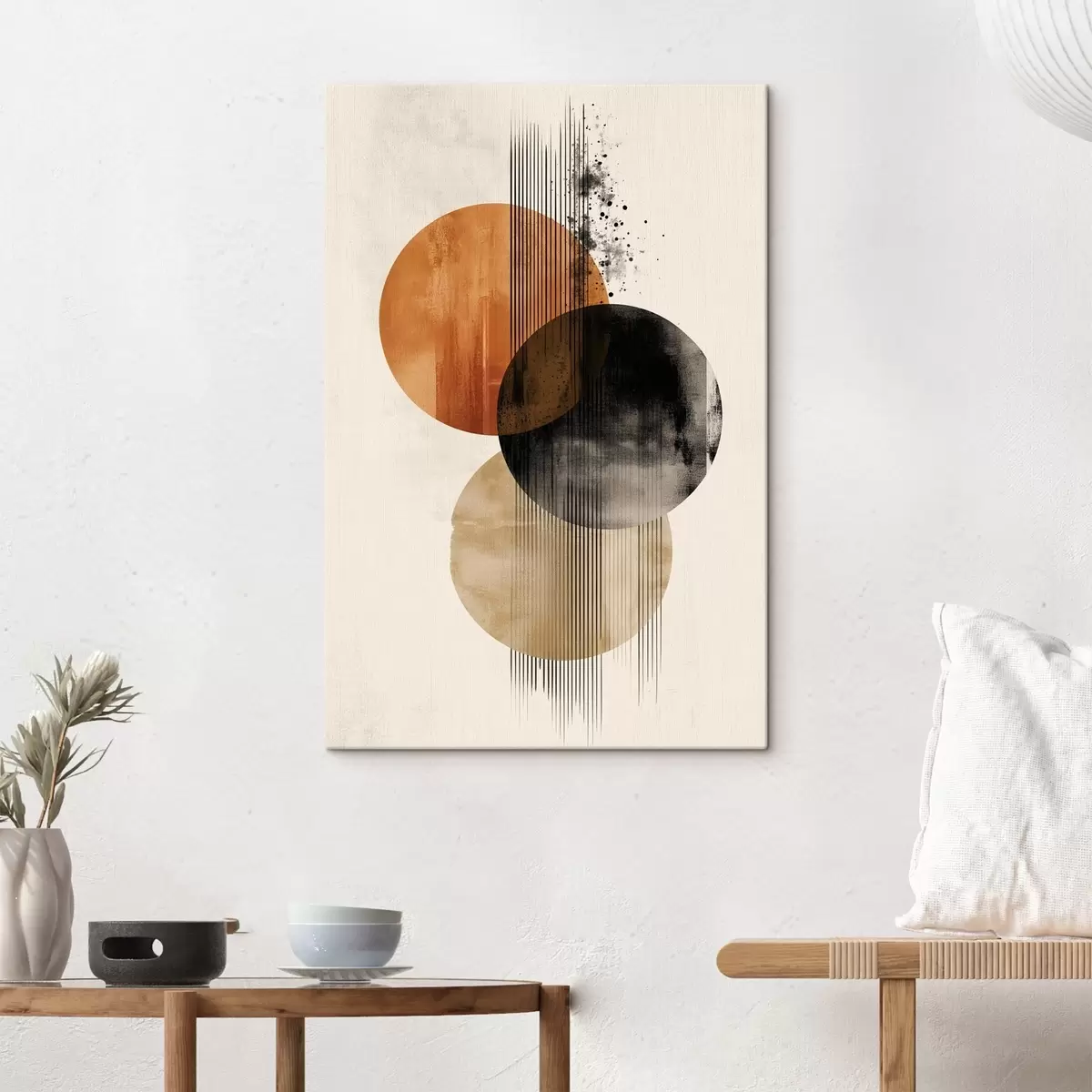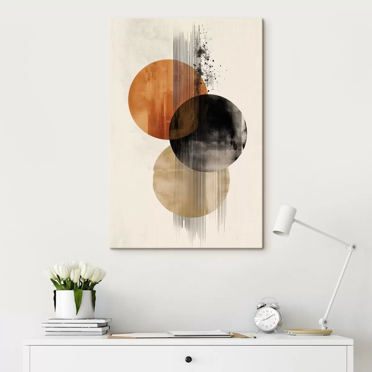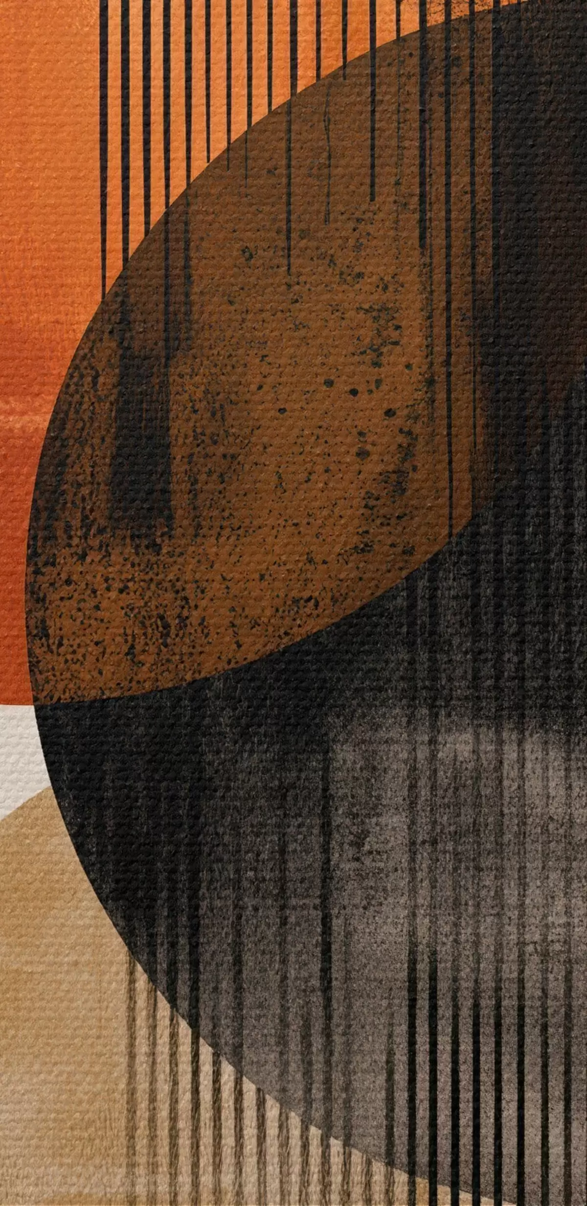 Tablouri Trei cercuri texturate cu linii într-o paletă de culori teracotă-negru s45885