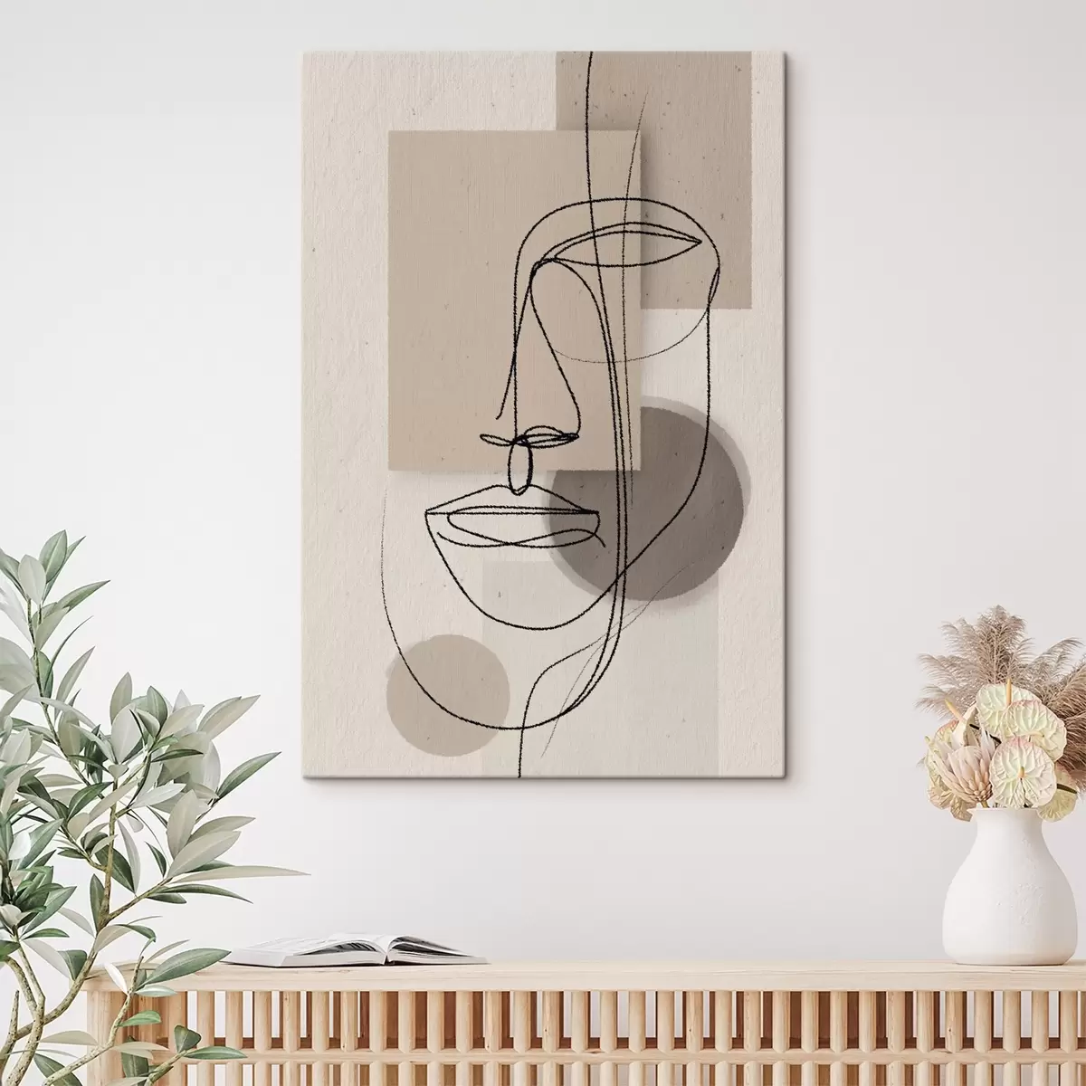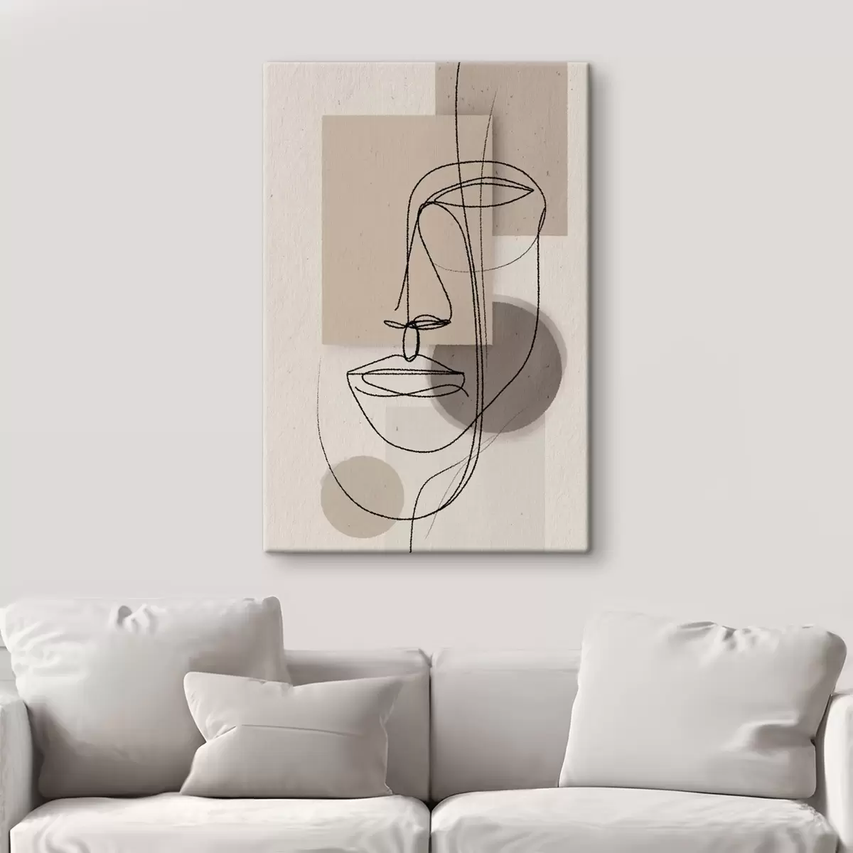 Tablouri Portret în linie peste forme geometrice bej s45886