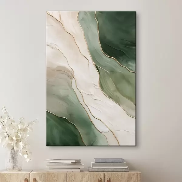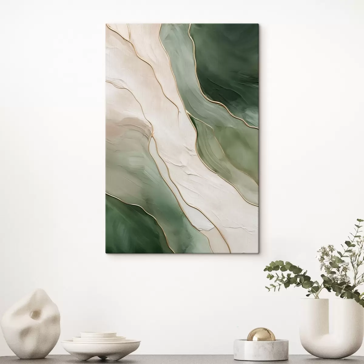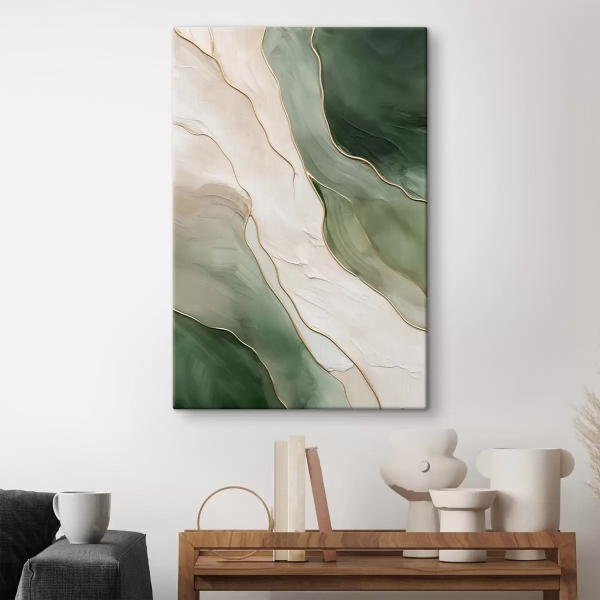 Pictură pe pânză Abstracție smarald cu linii fine galbene Nr s45888