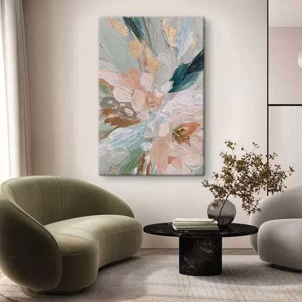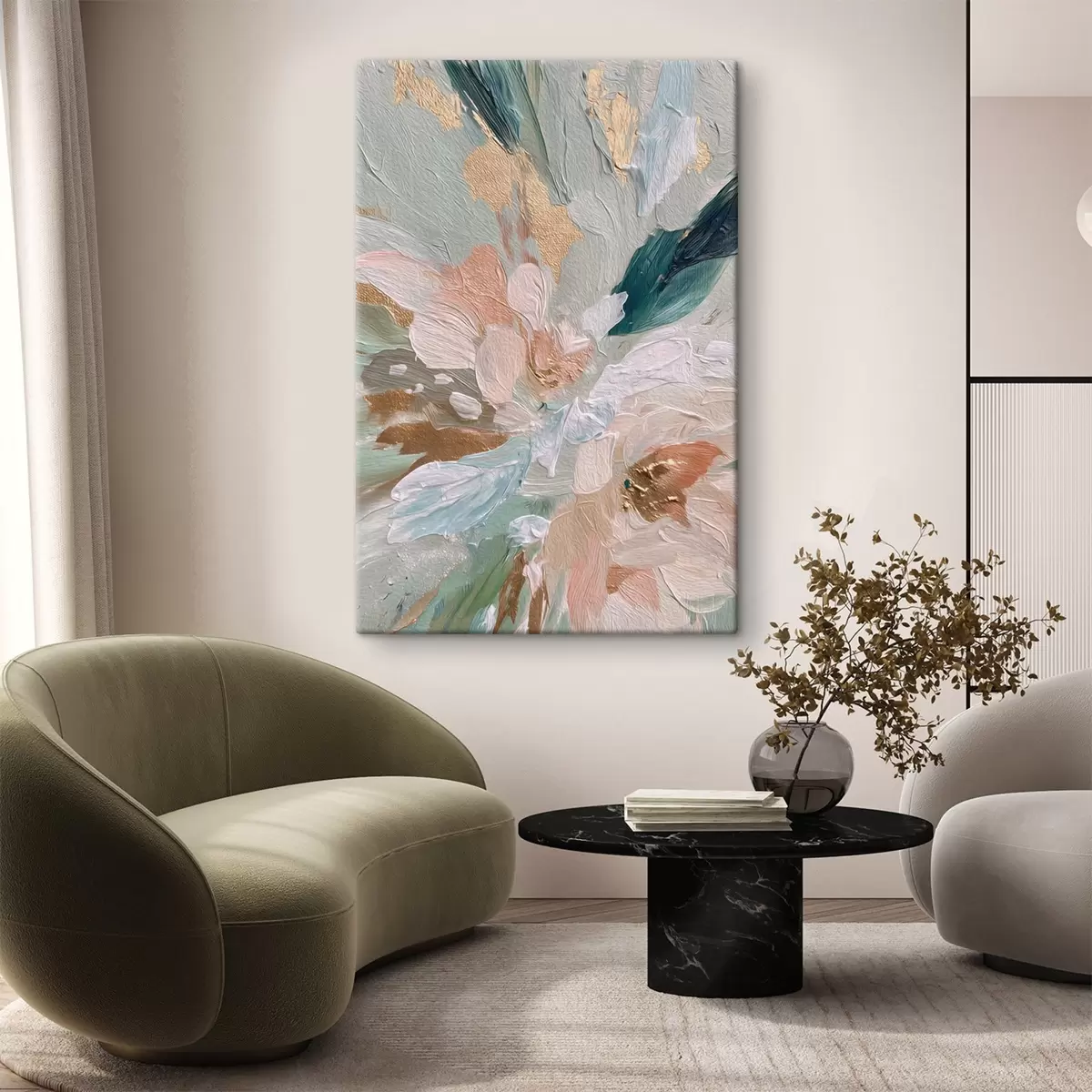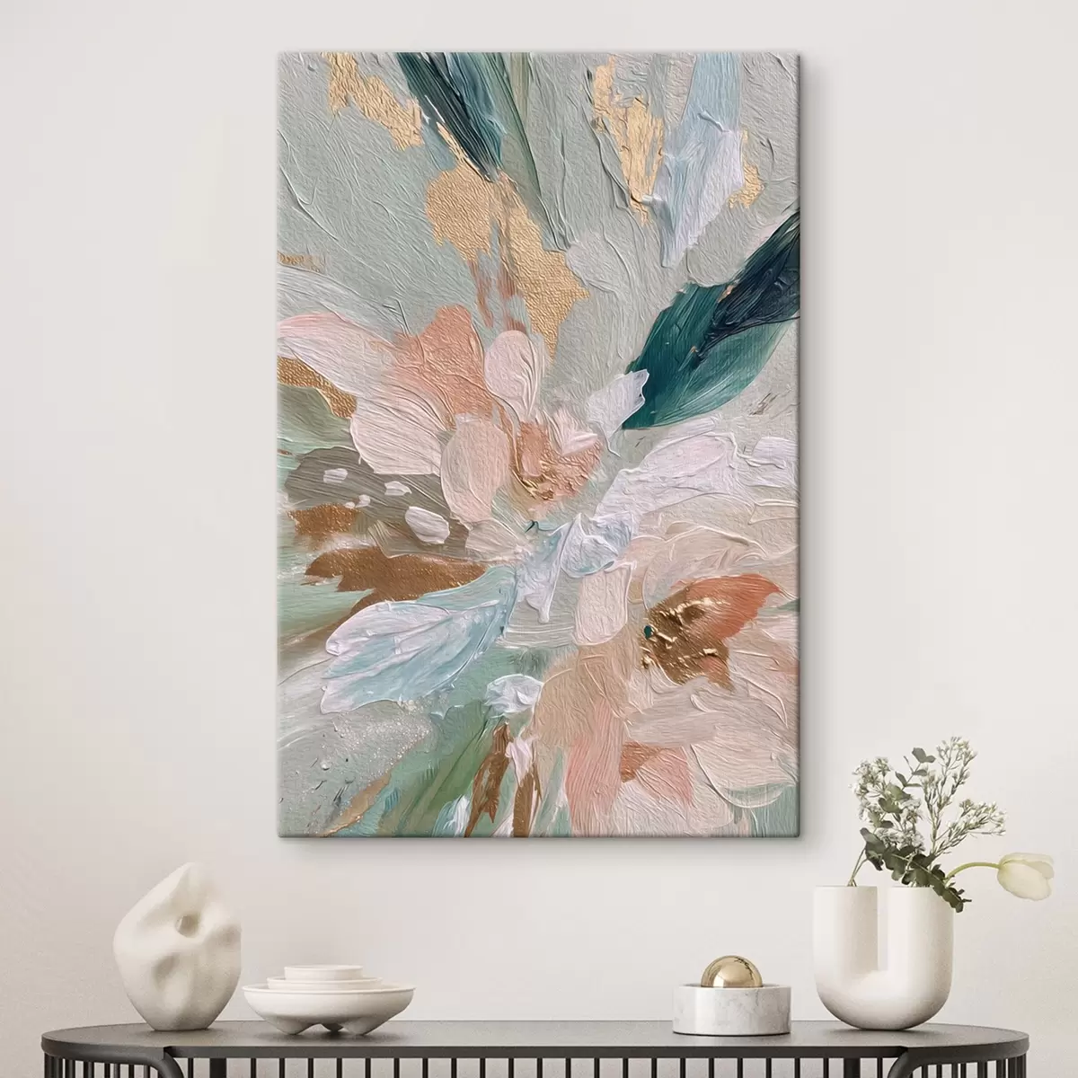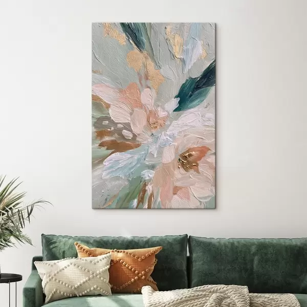 Pictură pe pânză Tușe florale pastelate cu pete galbene Nr s45899