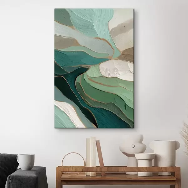 Pictură pe pânză Abstracție verde salvie cu contur galben Nr s45901