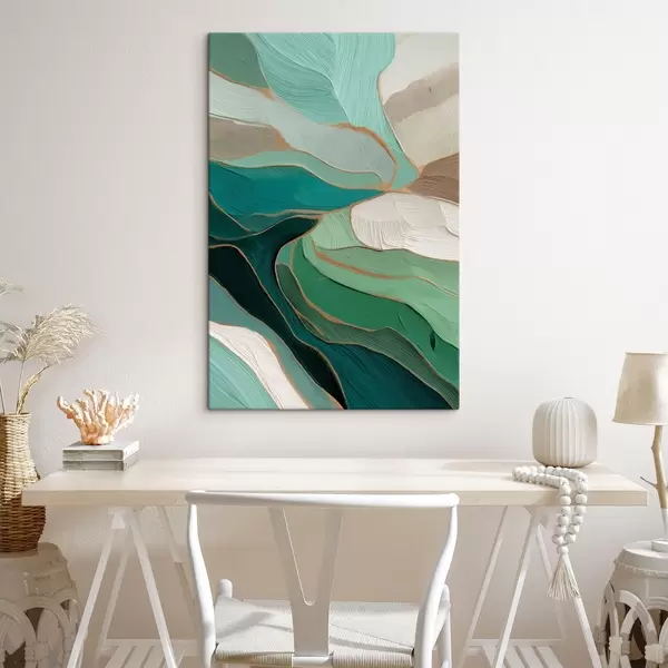Pictură pe pânză Abstracție verde salvie cu contur galben Nr s45901
