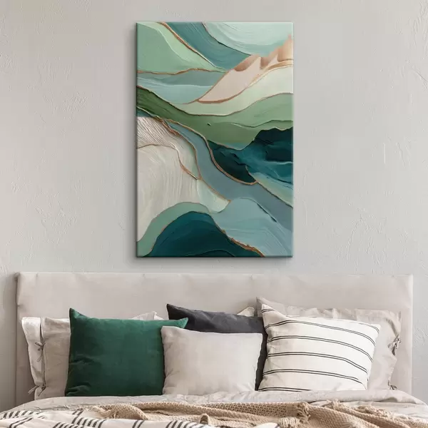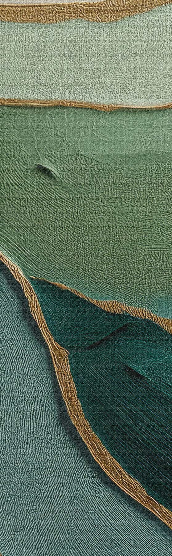 Tablouri Abstracție verde stratificată cu linii galbene și profunzime s45902