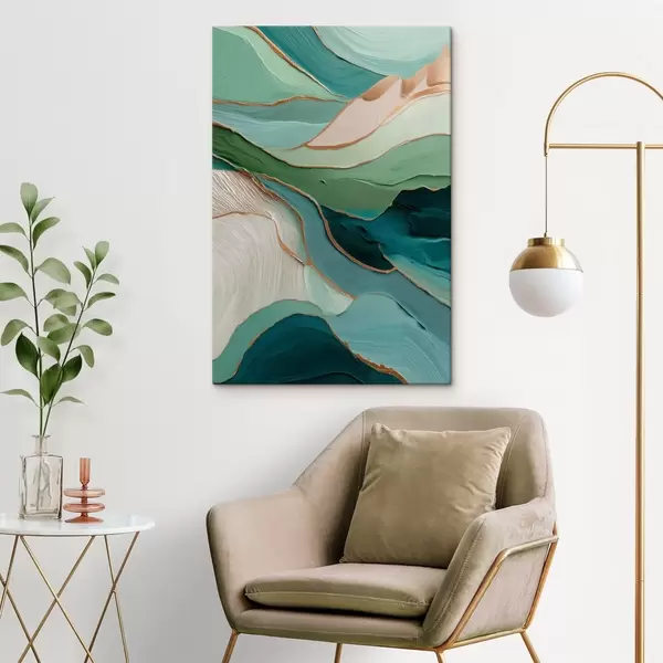 Tablouri Abstracție verde stratificată cu linii galbene și profunzime s45902