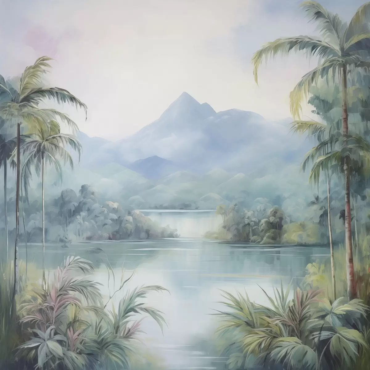 Tablouri Râu în junglă în fața muntelui s45912