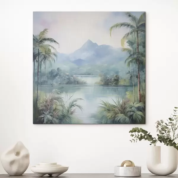 Pictură pe pânză Râu în junglă în fața muntelui Nr s45912