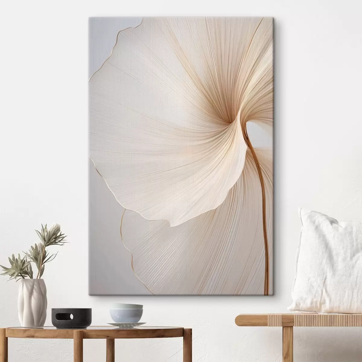 Pictură pe pânză Flori abstracte cu petale subțiri și delicate, în nuanțe de alb și bej Nr s45922