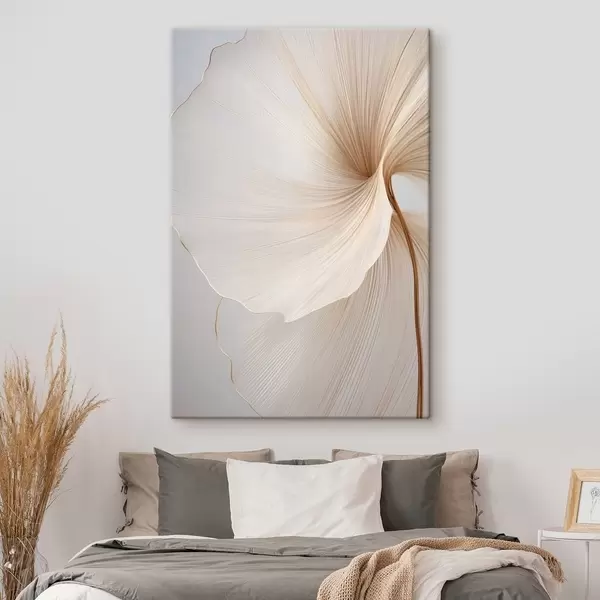 Pictură pe pânză Flori abstracte cu petale subțiri și delicate, în nuanțe de alb și bej Nr s45922