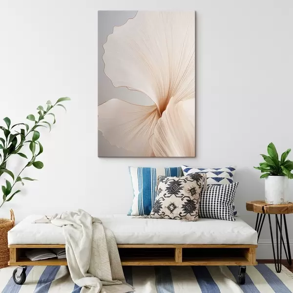 Pictură pe pânză Flori abstracte cu petale subțiri și delicate, în nuanțe de alb și bej Nr s45923