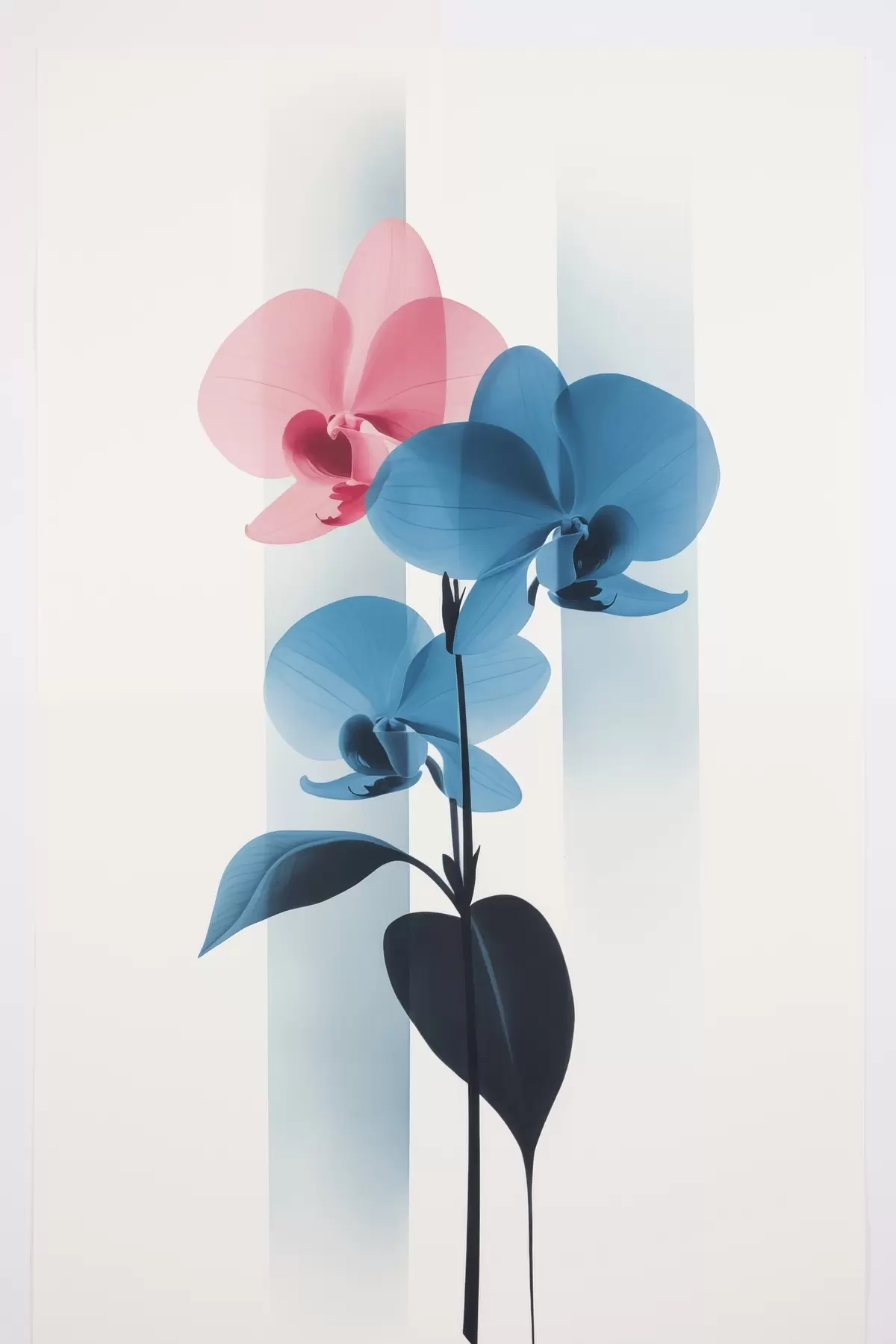 Tablouri Orhidee cu frunze pe fond alb cu dungi verticale s45925