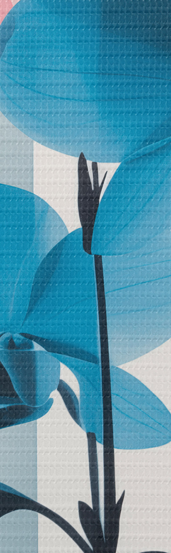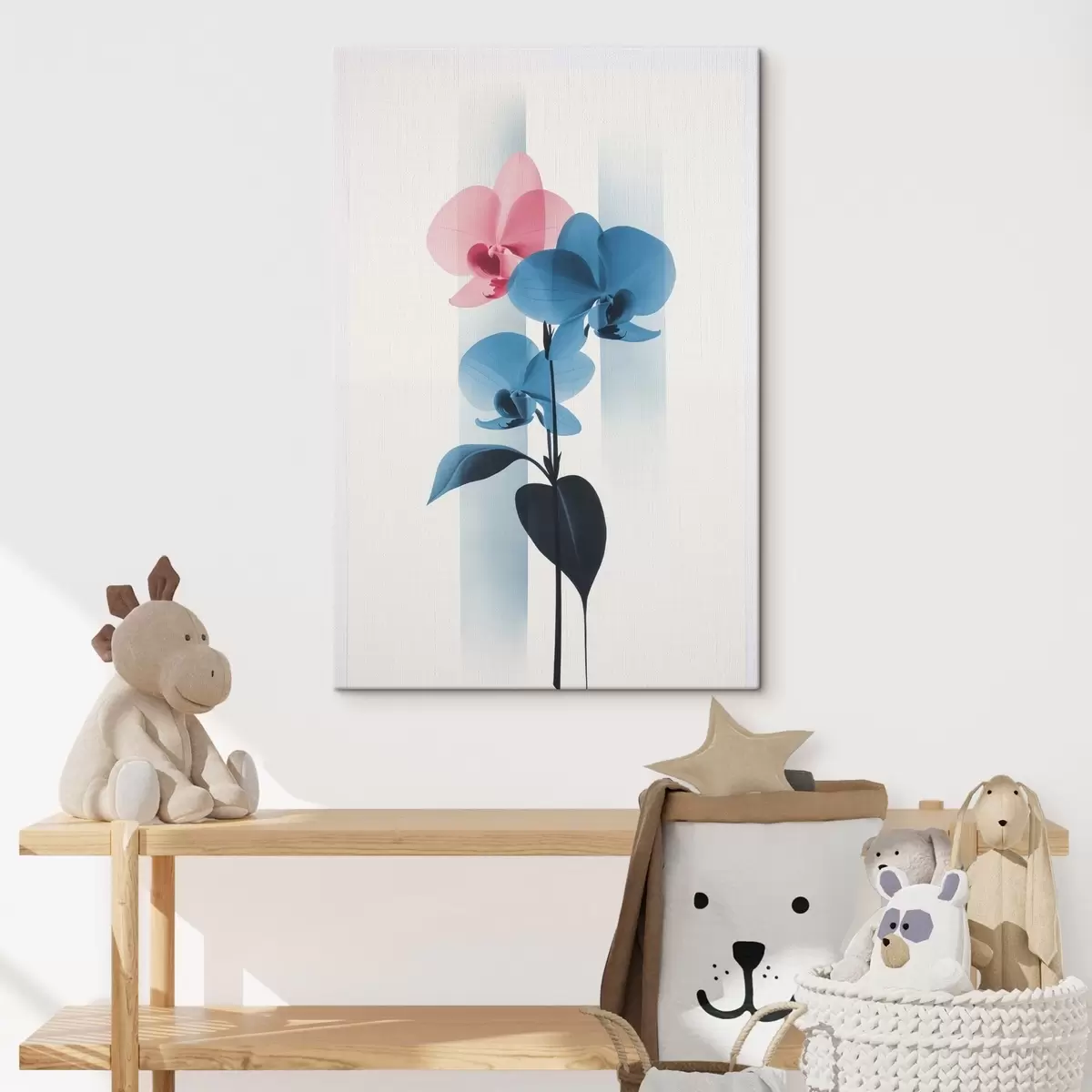 Pictură pe pânză Orhidee cu frunze pe fond alb cu dungi verticale Nr s45925