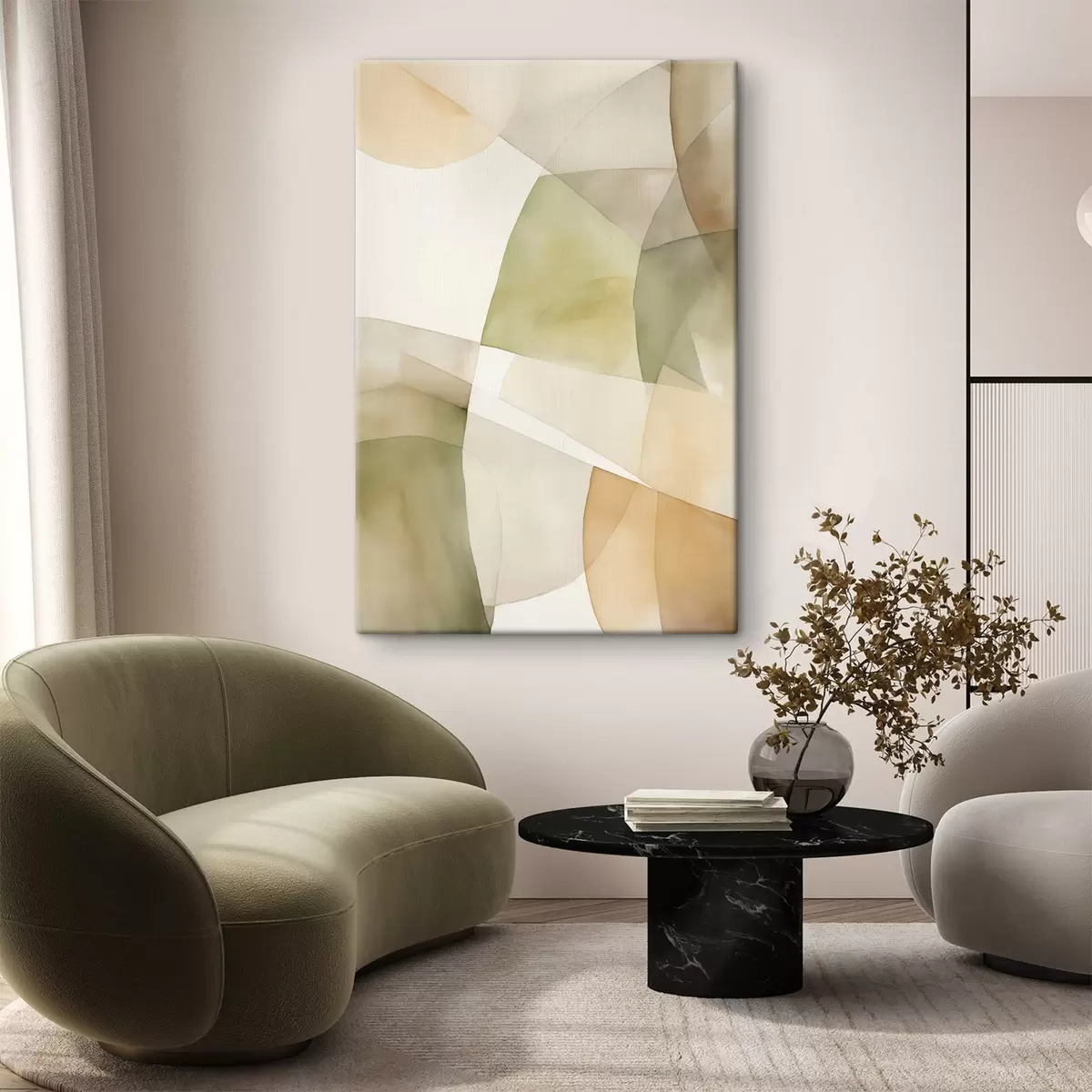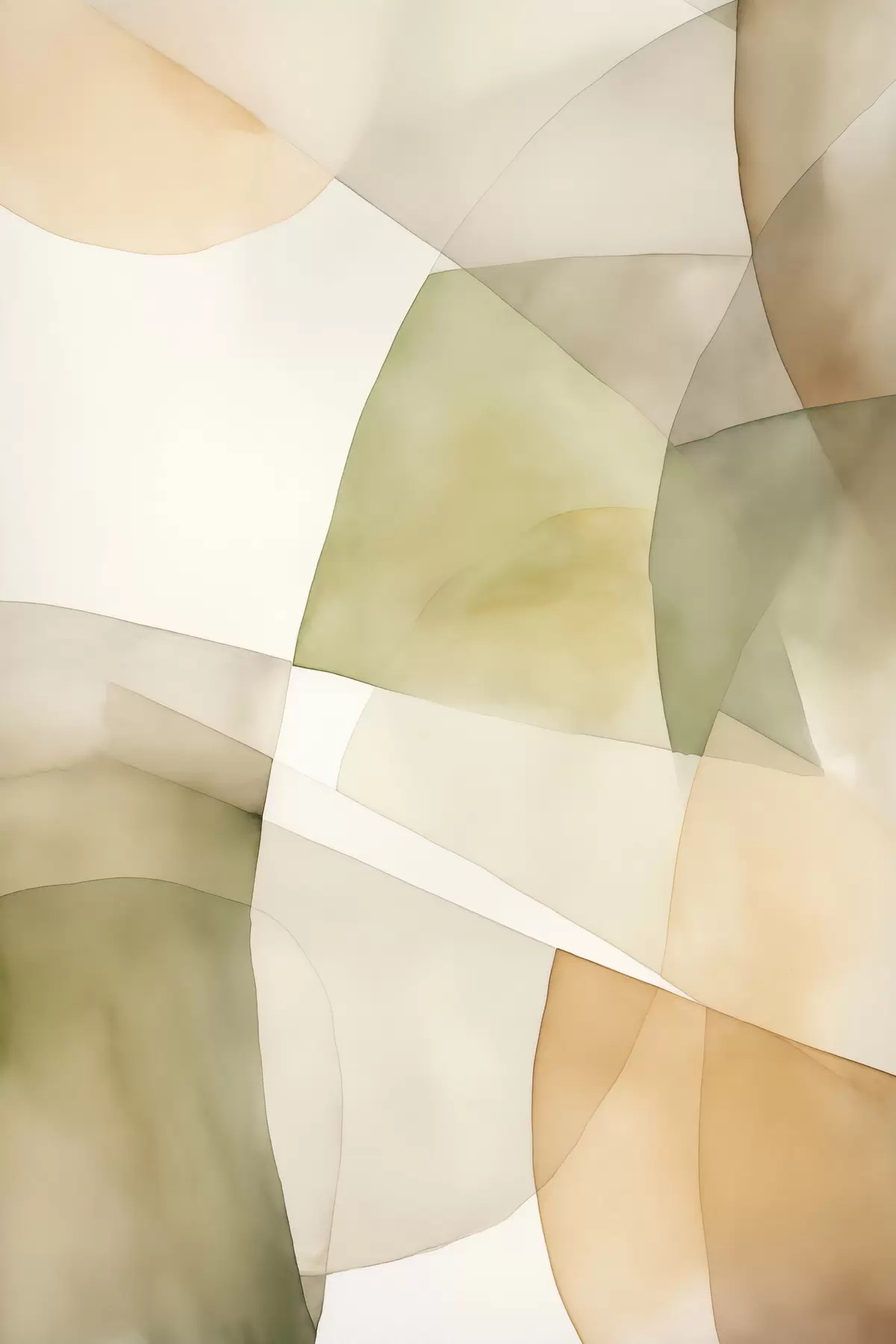 Pictură pe pânză Forme geometrice abstracte texturate în acuarelă, în nuanțe de verde, maro și bej Nr s45928