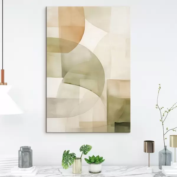 Pictură pe pânză Forme geometrice abstracte texturate în acuarelă, în nuanțe de verde, maro și bej Nr s45929