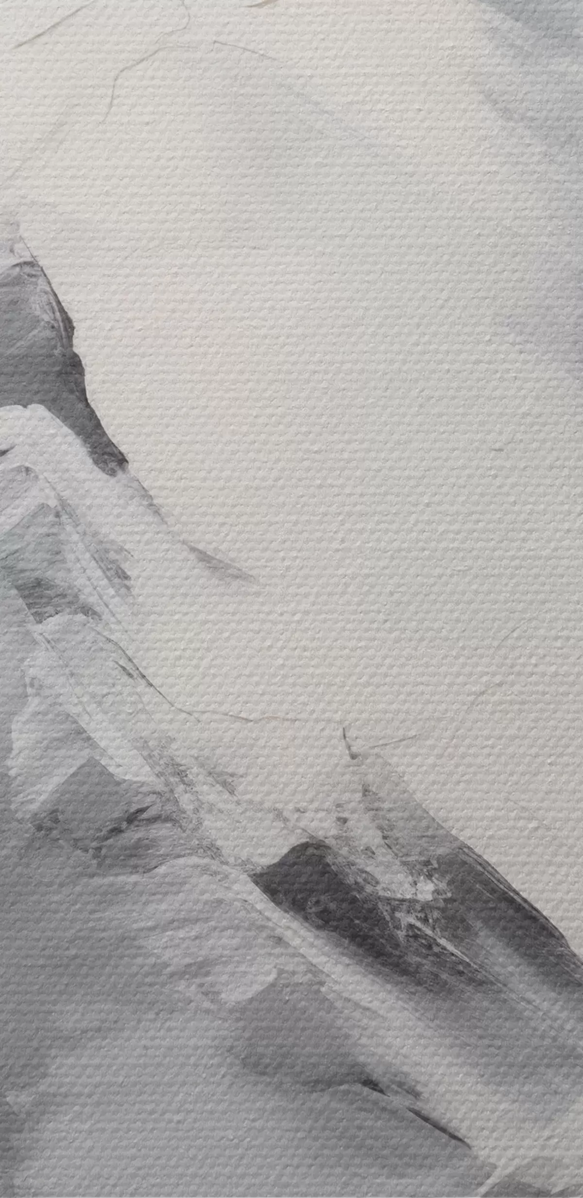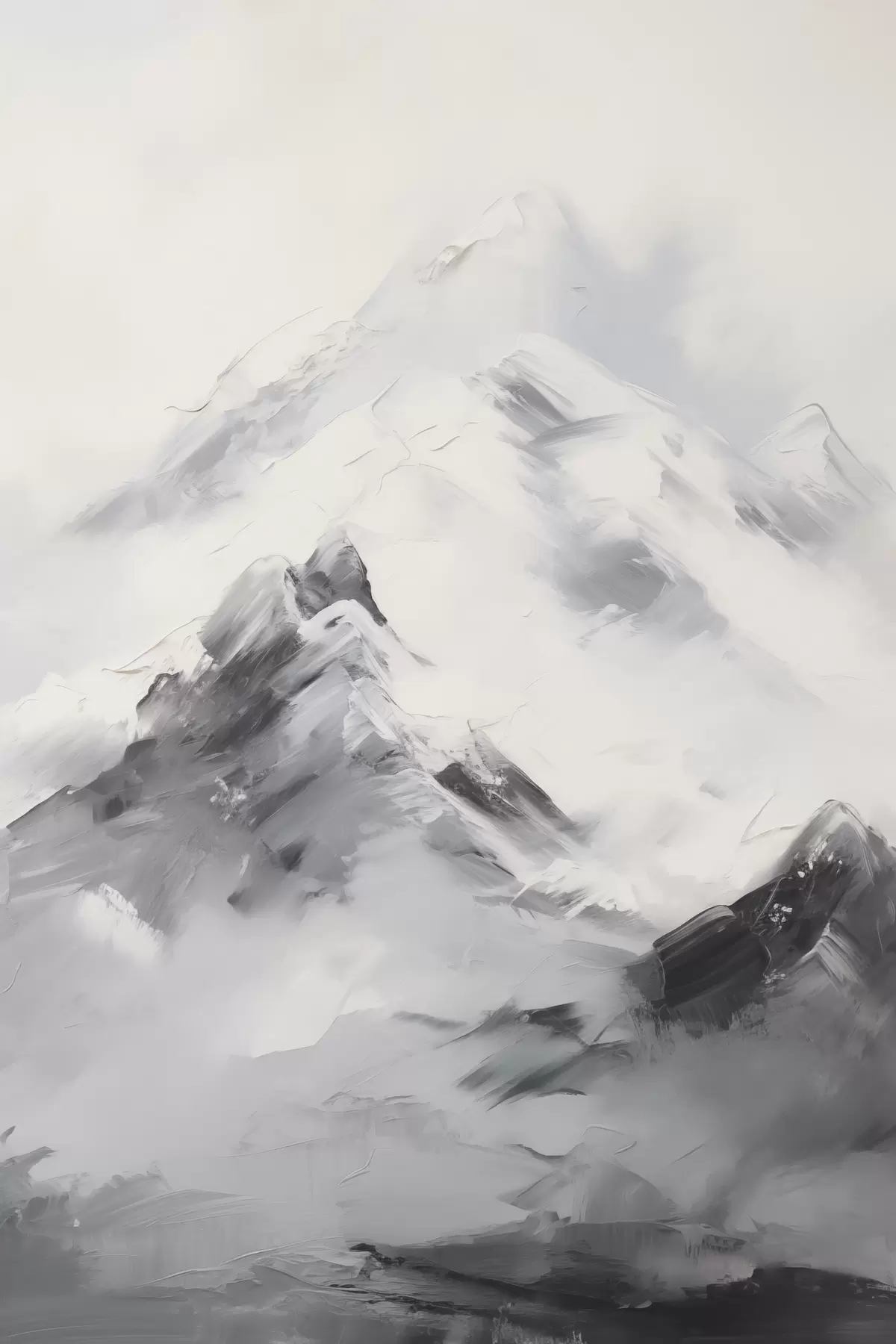 Tablouri Vârfuri de munte înzăpezite cu umbre cenușii, cer cenușiu, pensule, texturat, minimalist s45933