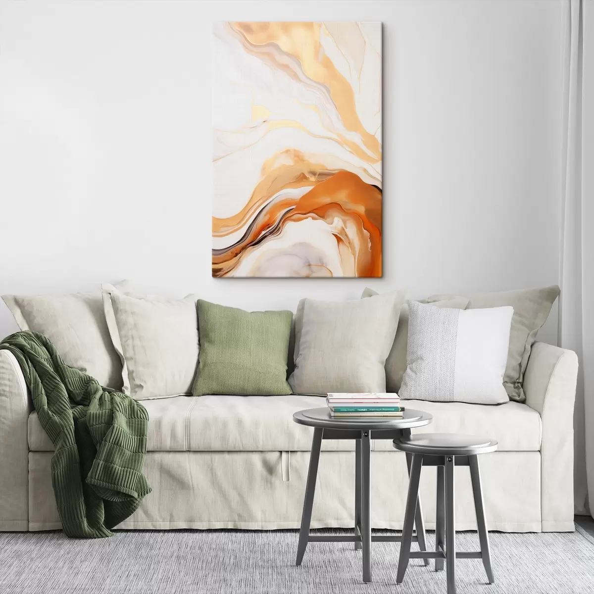 Pictură pe pânză Imitare de pictură abstractă cu forme fluide în nuanțe de alb, portocaliu și maro, minimalistă Nr s45938