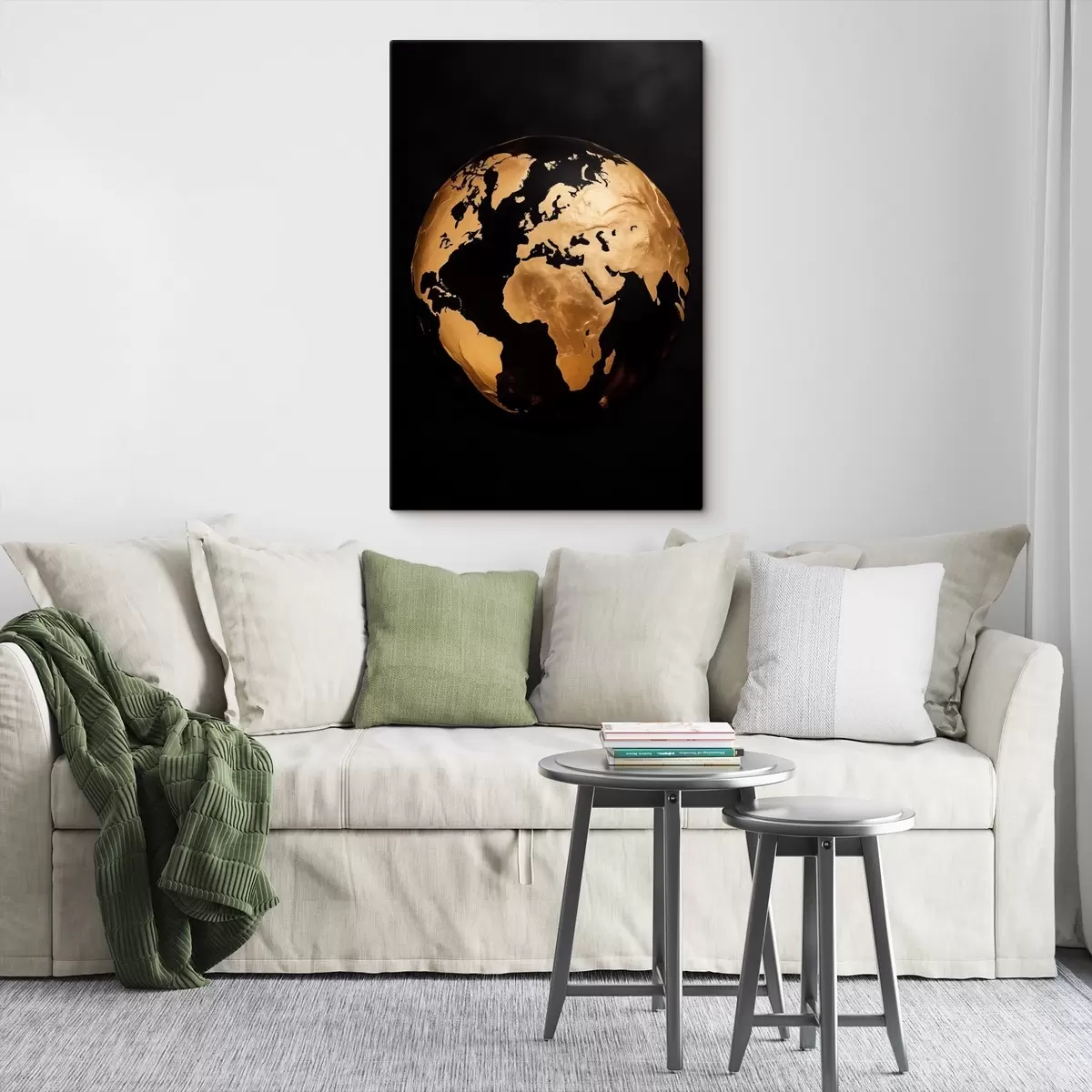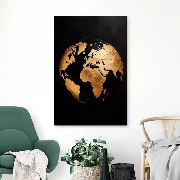 Pictură pe pânză Glob pământesc abstract texturat galben, planetă pe fundal negru, artă minimalistă modernă Nr s45942