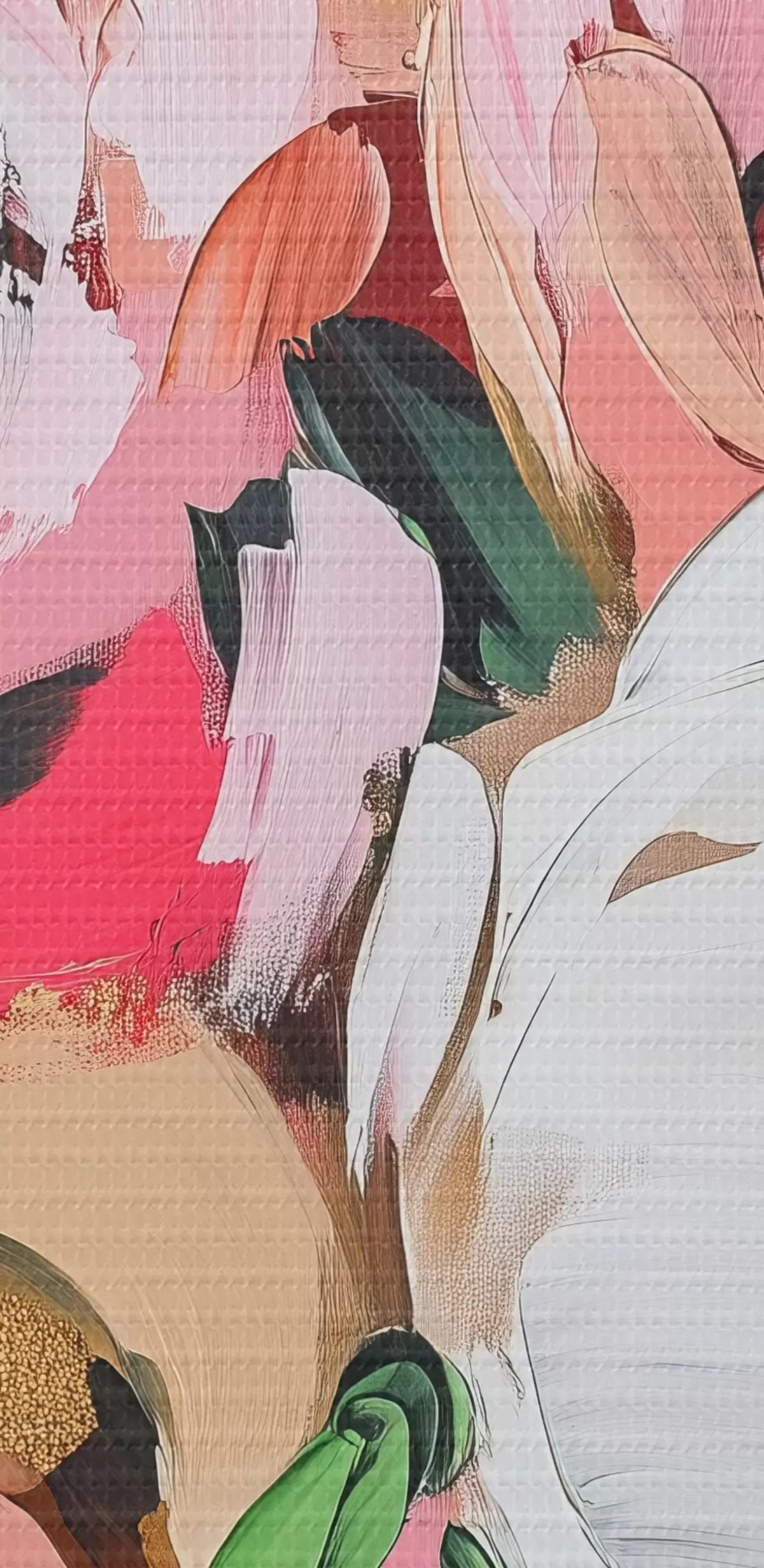 Trei tipuri de materiale sunt disponibile pentru comandă: Economic Canvas - un material dens și durabil pentru imprimarea digitală, identic cu pânza de pictor, suprafață impermeabilă, reproducere realistă a detaliilor, material cu granulație medie. Premium Canvas - textura seamănă cu cea a pânzei unui pictor (fire mici împletite). Reproducere moale, detaliată a imaginii pe o suprafață mată. Eco-Premium - țesătură 100% bumbac de înaltă calitate. Datorită fibrelor naturale de bumbac, materialul este durabil și rezistent la uzură. Reproducere excelentă a culorilor și a detaliilor.