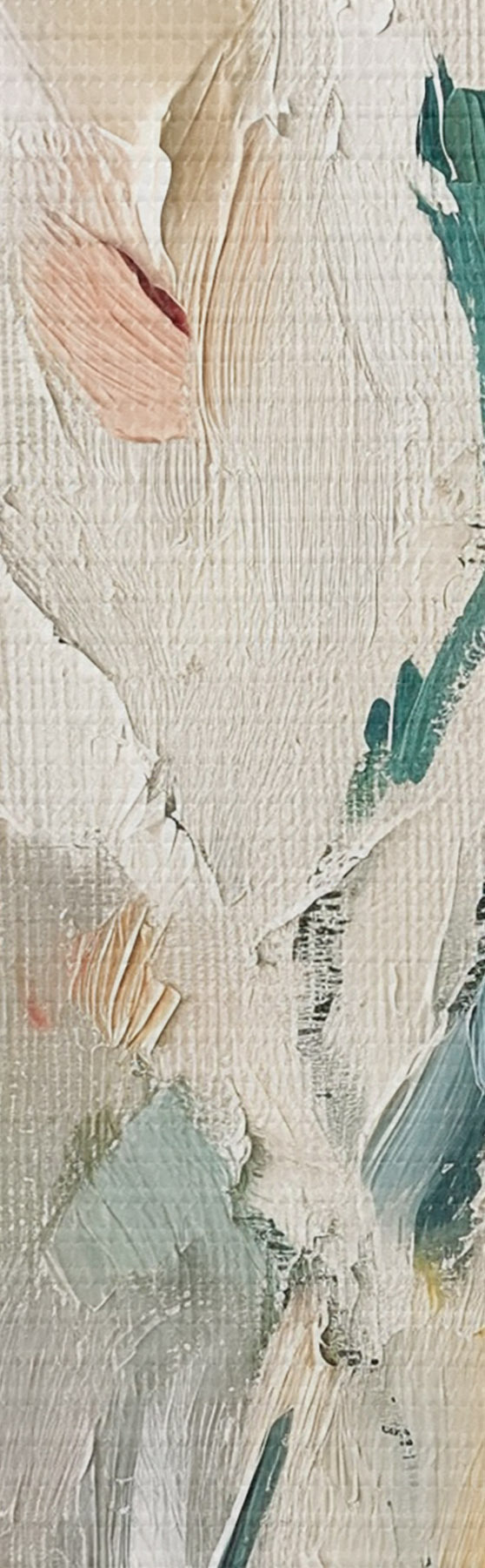 Țesătura fină a firelor de pe această pânză seamănă cu suprafața pânzelor artiștilor profesioniști.