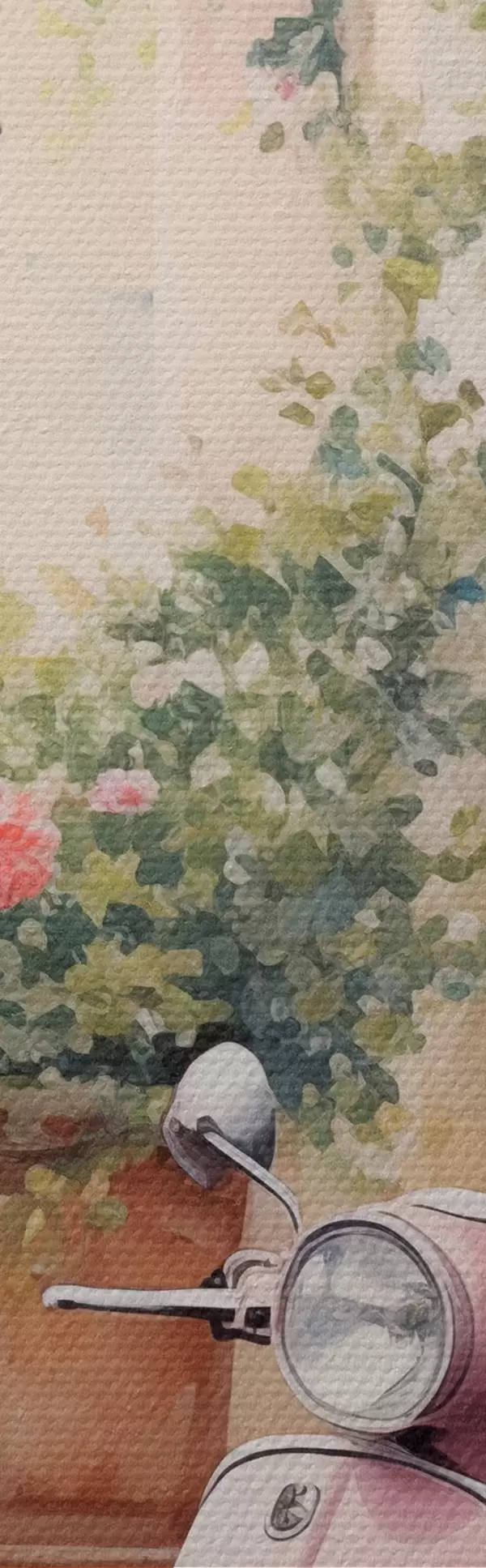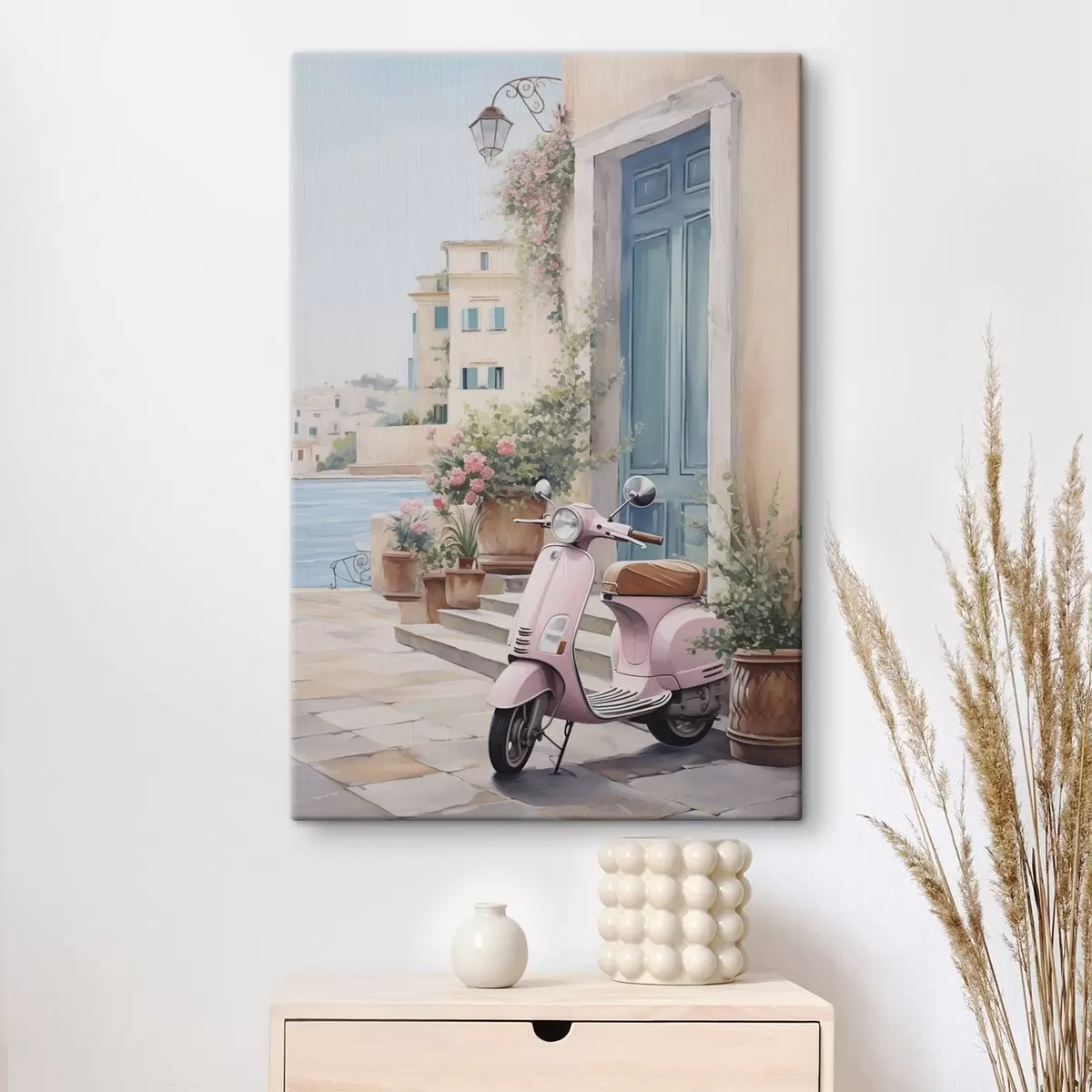 Pictură pe pânză Un scuter pe fundalul unei case Nr s46065