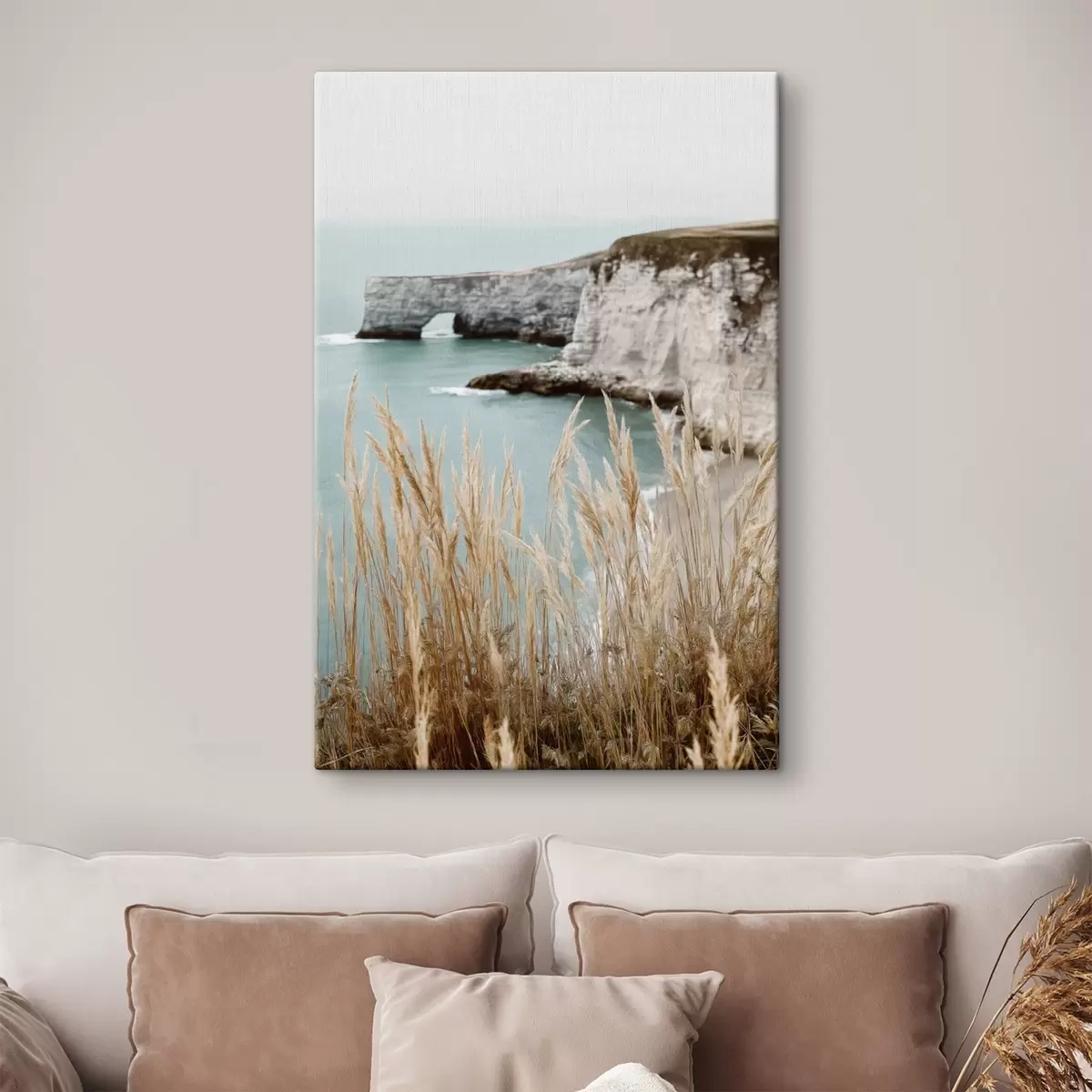 Pictură pe pânză Stânci de coastă cu stuf în prim-plan Nr s46141