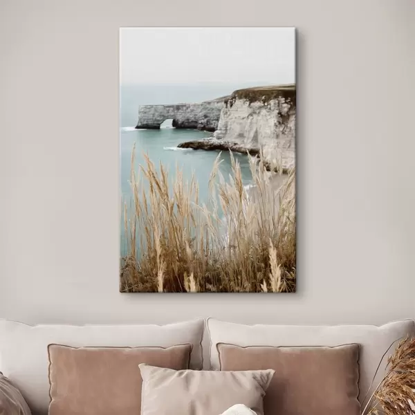 Tablouri Stânci de coastă cu stuf în prim-plan s46141