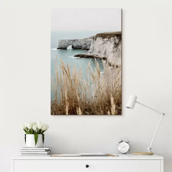 Tablouri Stânci de coastă cu stuf în prim-plan s46141