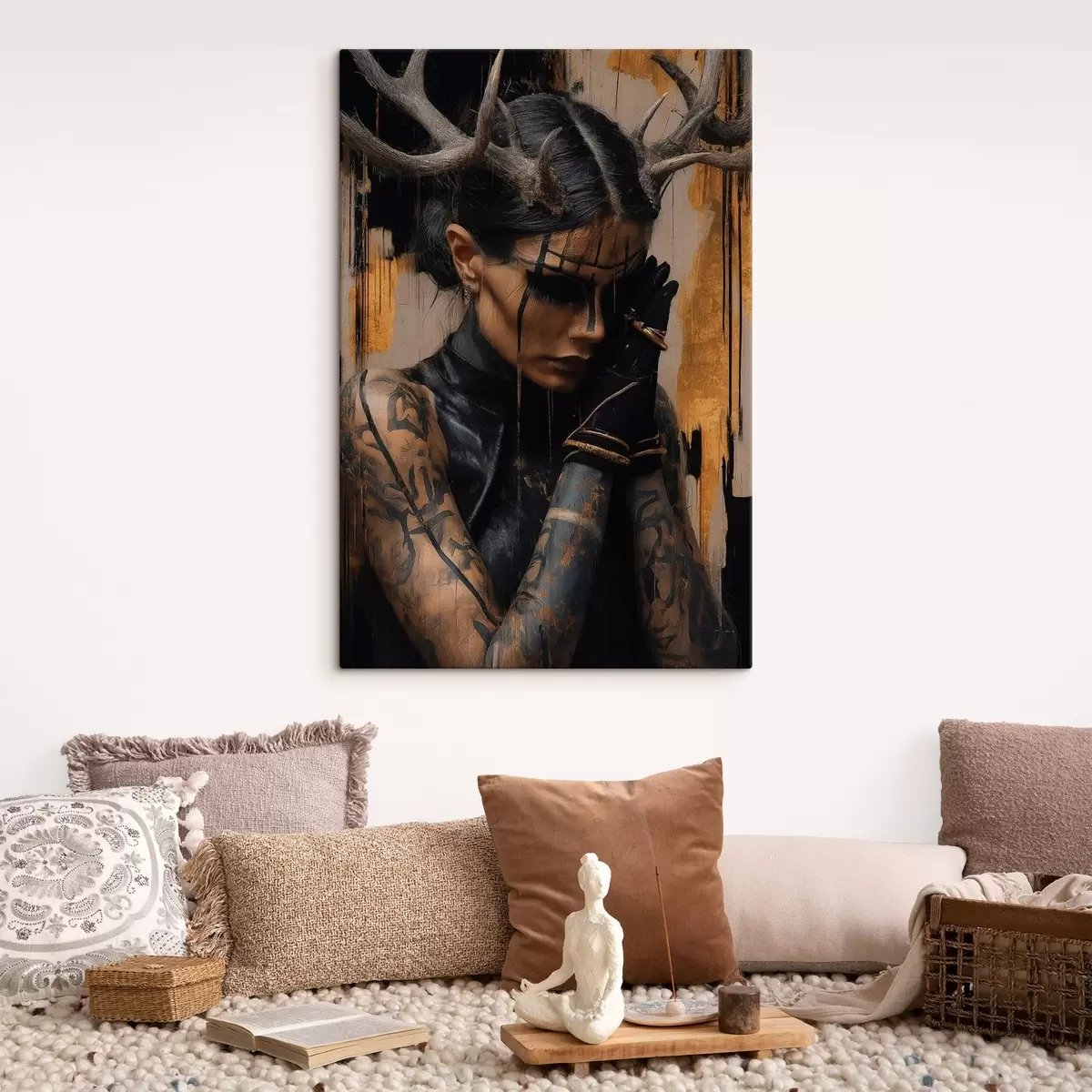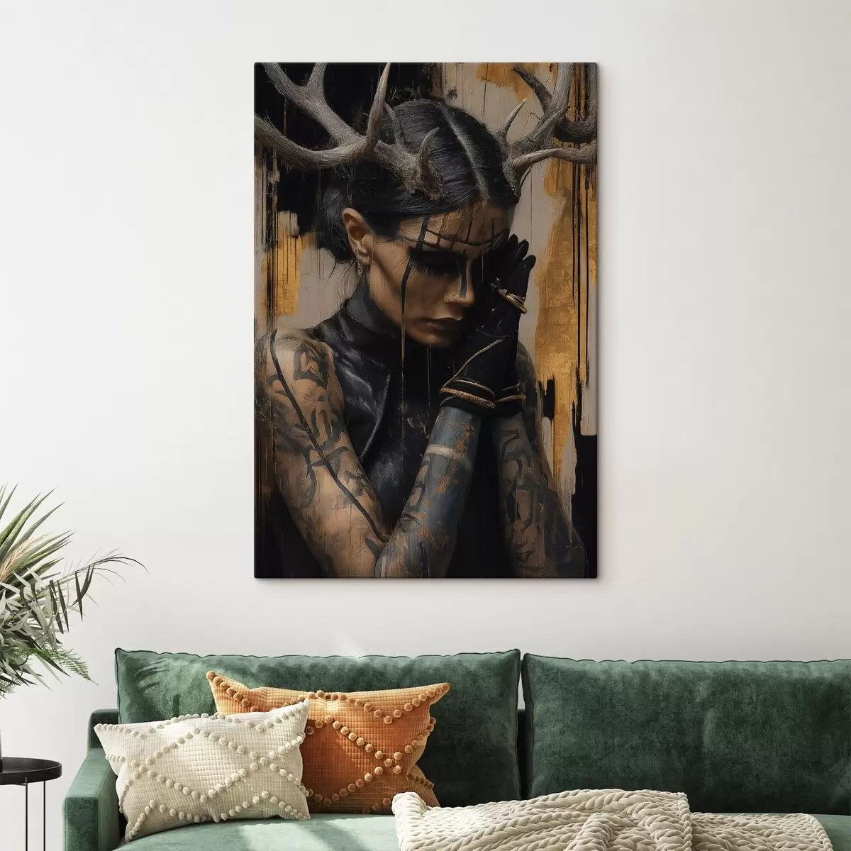 Tablouri Femeie cu coarne, cu o privire întunecată și linii negre pe față s46144