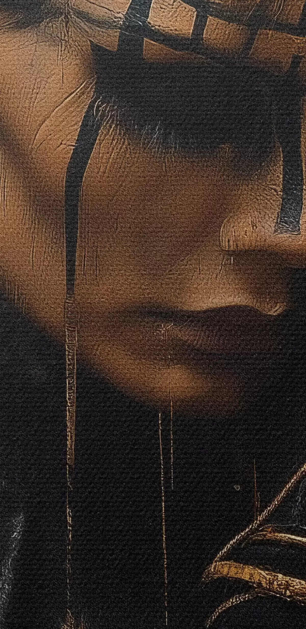 Pictură pe pânză Femeie cu coarne, cu o privire întunecată și linii negre pe față Nr s46144