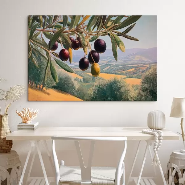 Tablouri Ramură de măslin cu fructe negre pe fundalul unui peisaj de vară s46150