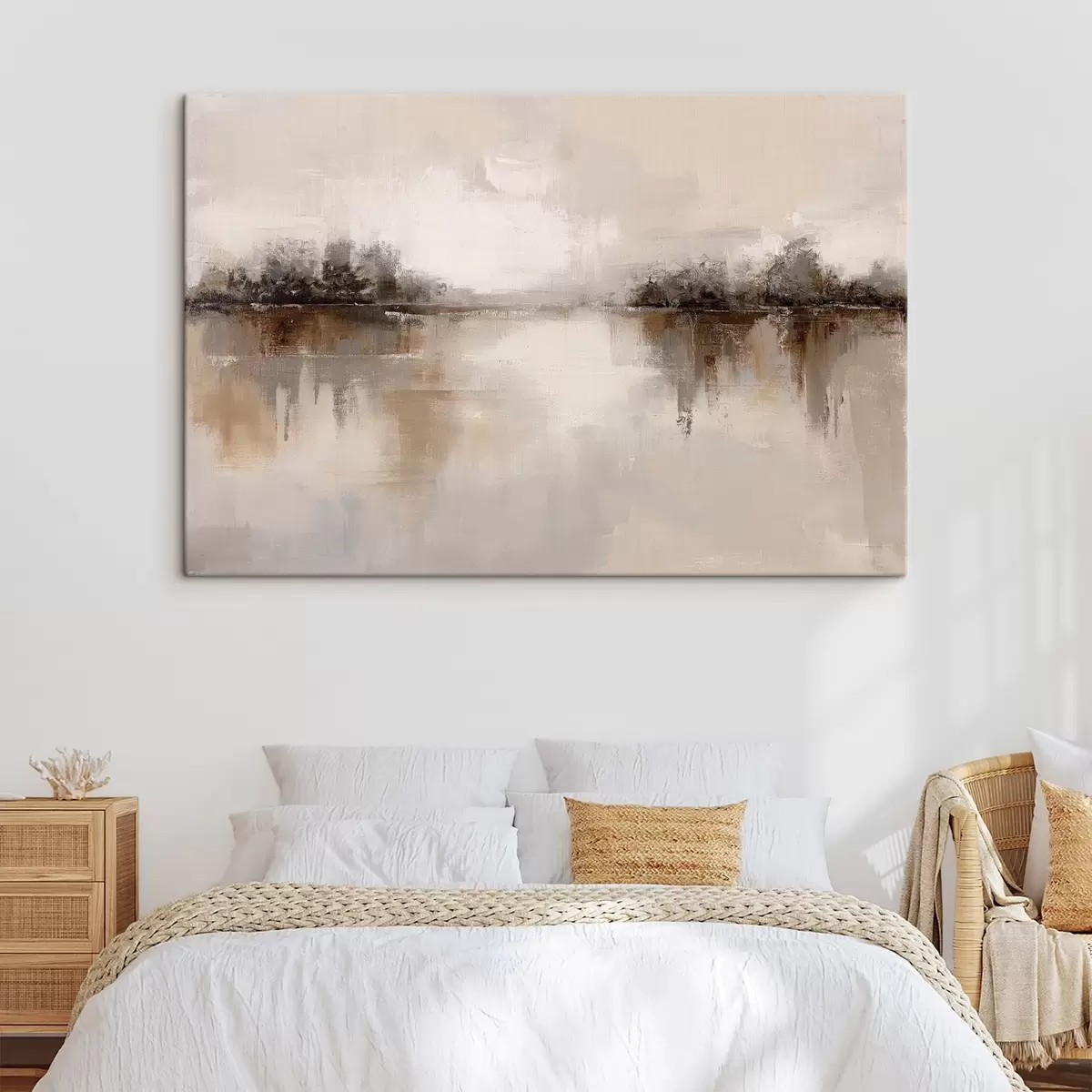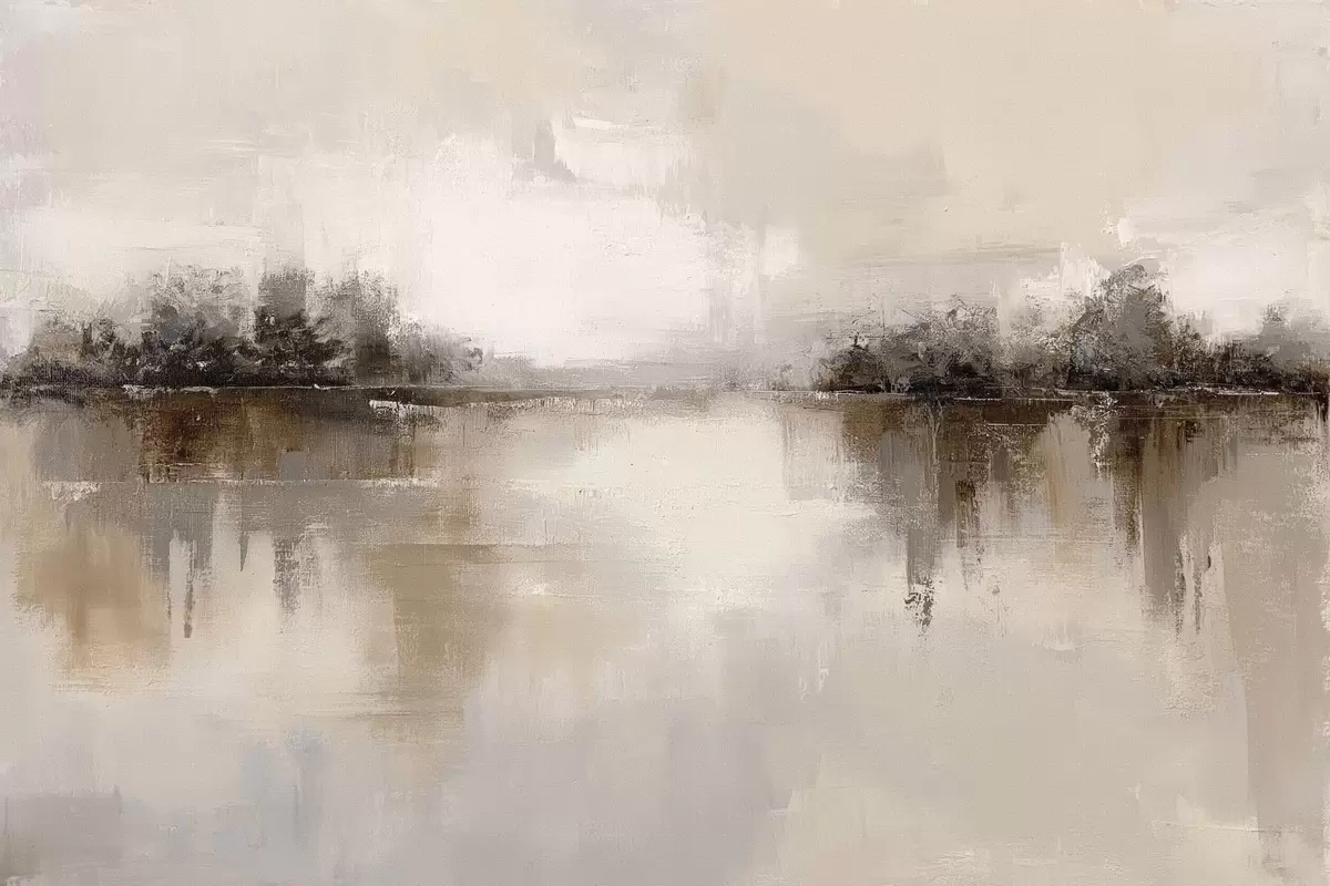 Tablouri Peisaj delicat cu un lac în tonuri calde de bej-gri s46158