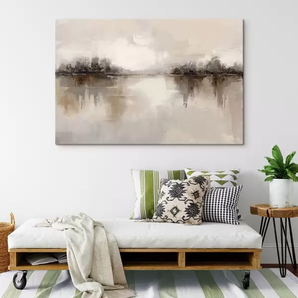 Tablouri Peisaj delicat cu un lac în tonuri calde de bej-gri s46158