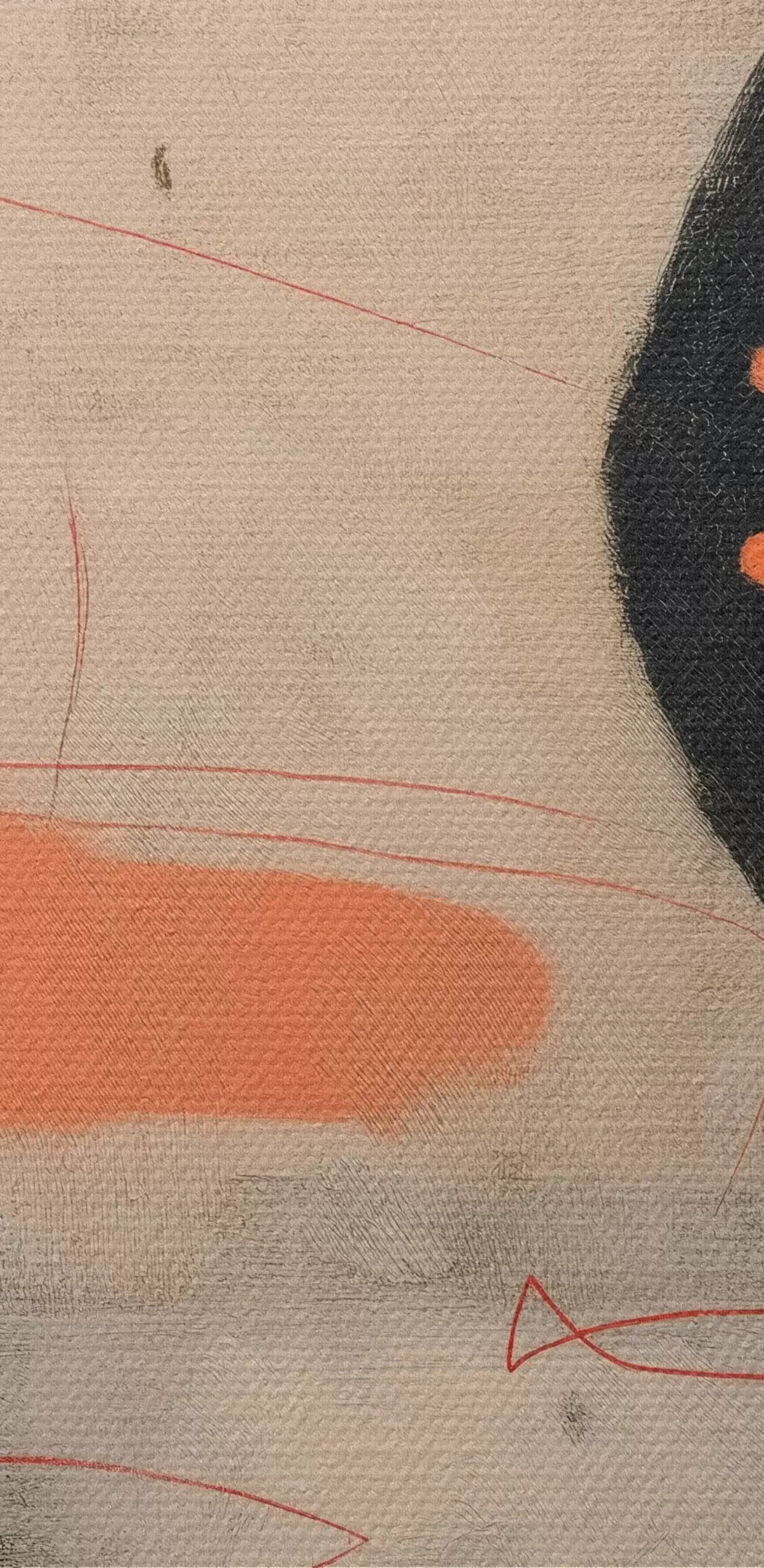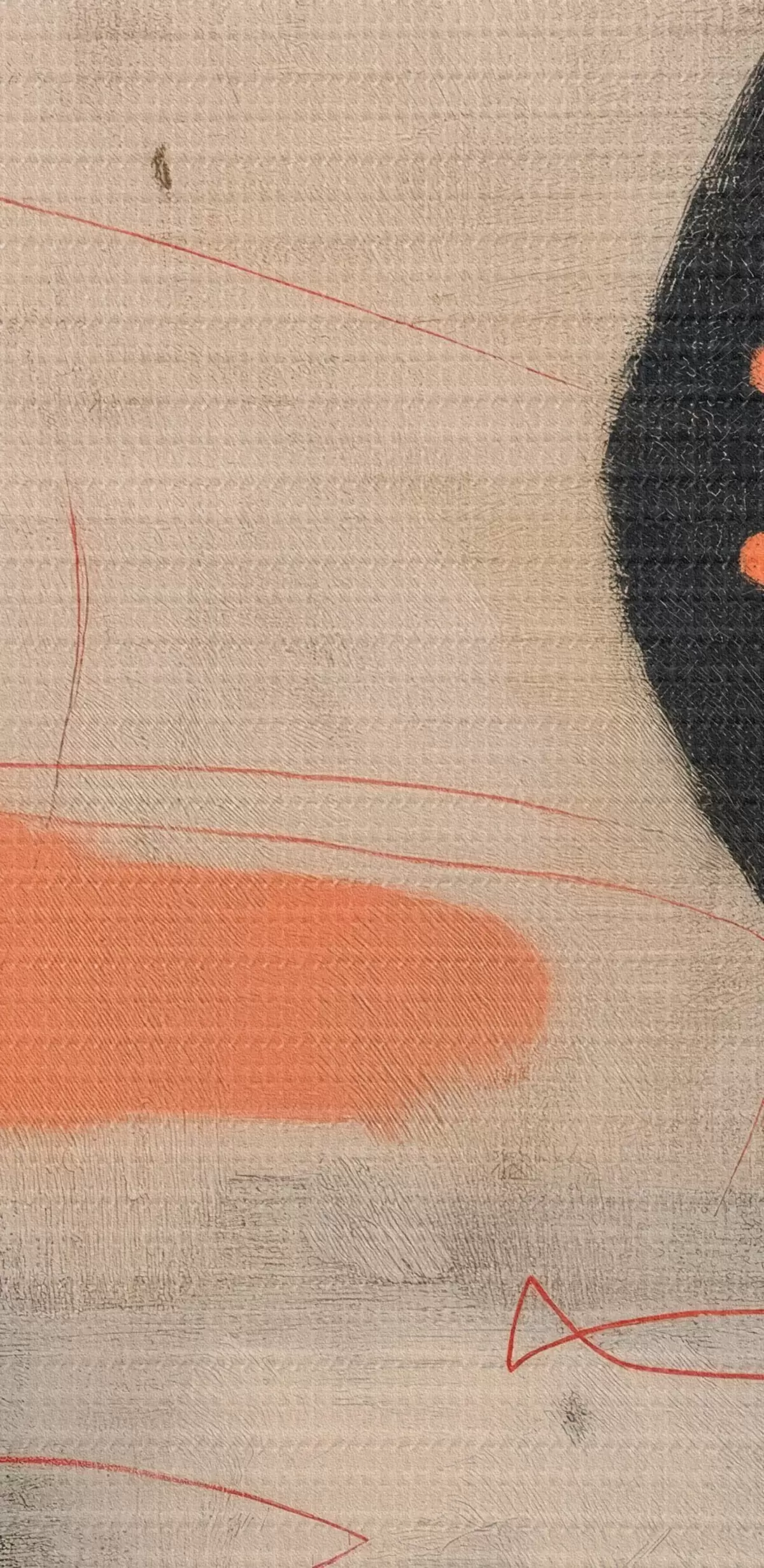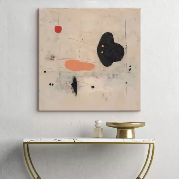 Pictură pe pânză Desen abstract minimalist cu accente negre și coral Nr s46159