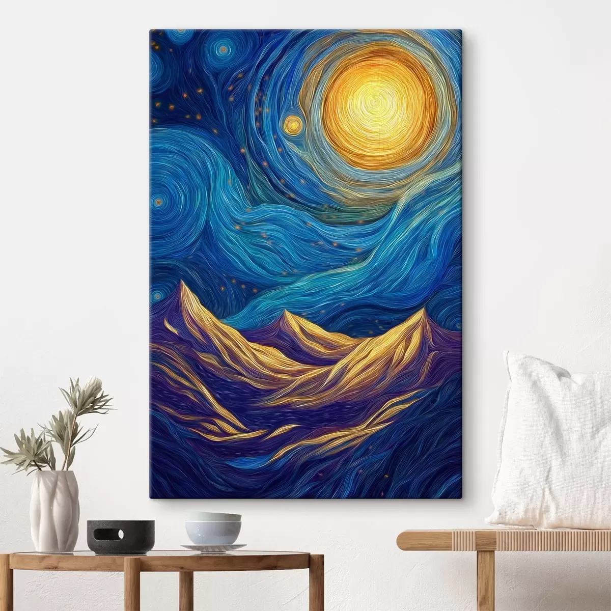 Tabloul poate fi agățat imediat după primirea sa. Tabloul va fi întins pe o targă din lemn de 2 cm lățime.