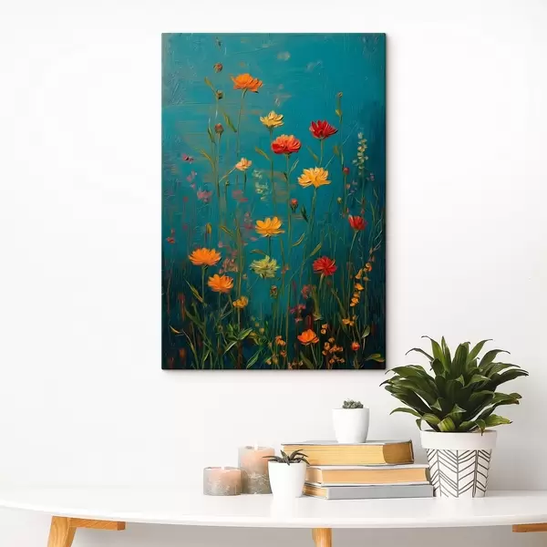 Pictură pe pânză Flori sălbatice pe un fundal turcoaz intens Nr s46169
