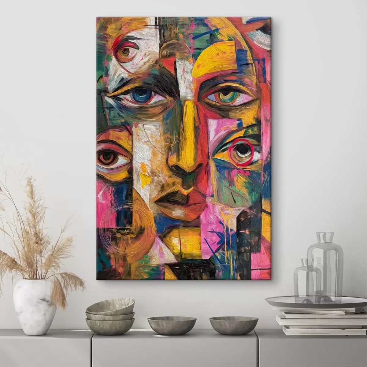 Pictură pe pânză Față abstractă cu forme geometrice luminoase Nr s46175