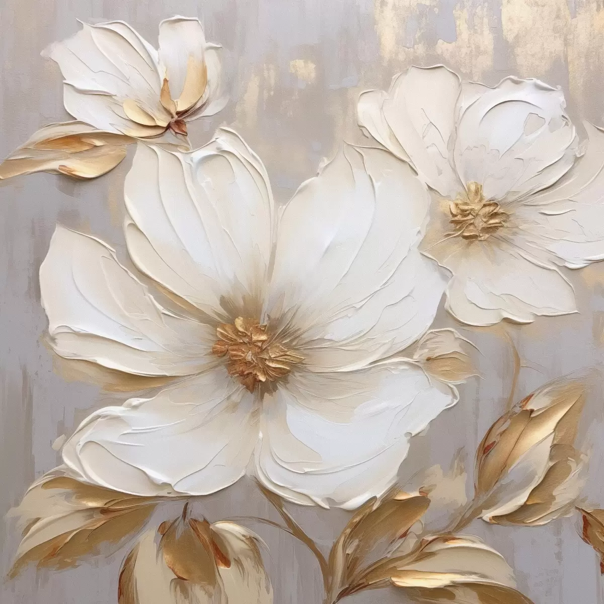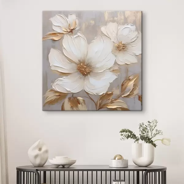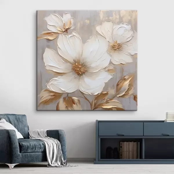 Tablouri Flori mari texturate cu tușe de vopsea în paletă caldă s46176