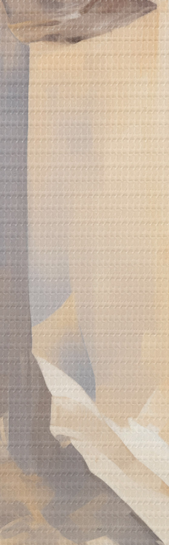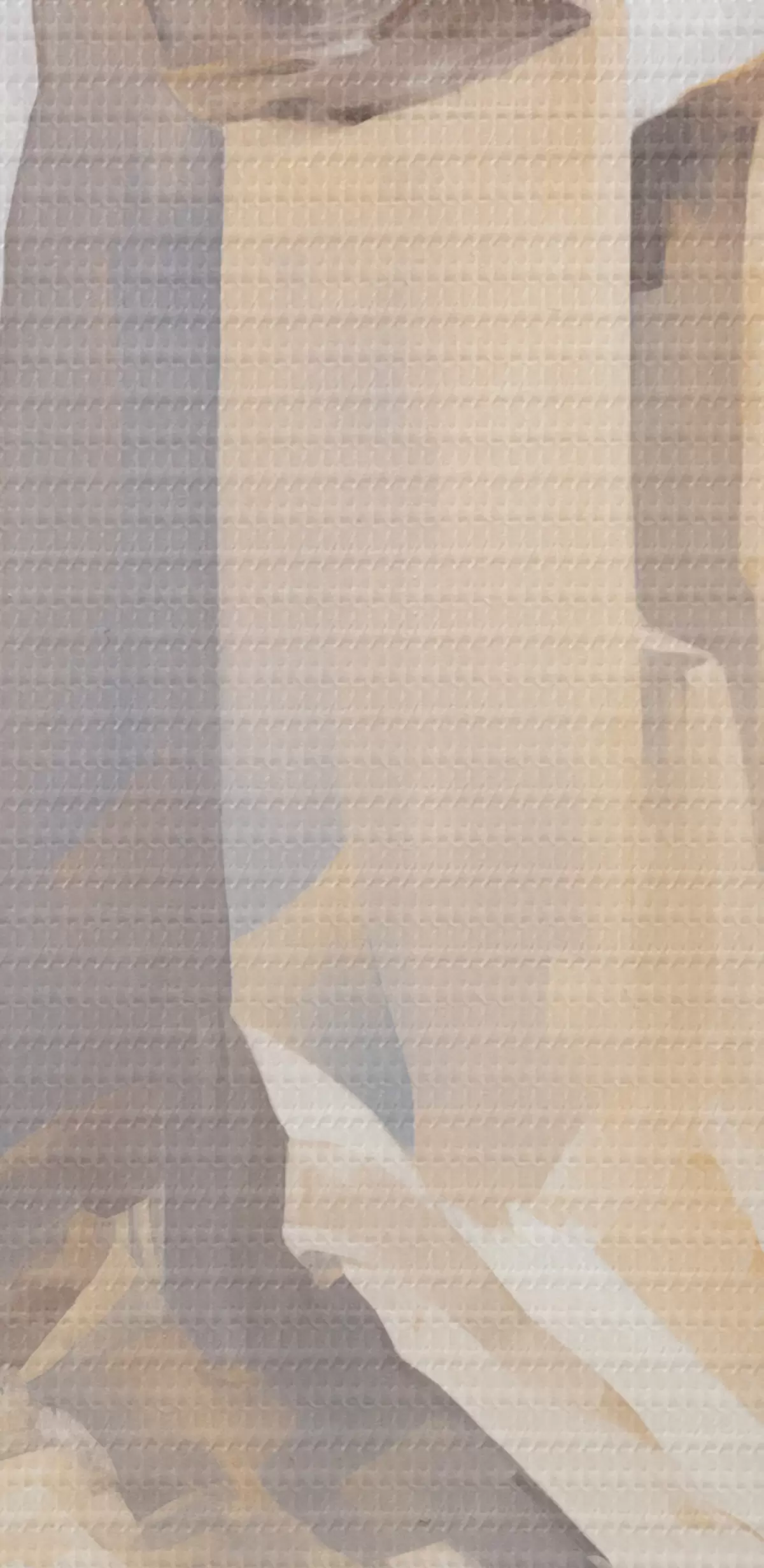 Țesătura fină a firelor de pe această pânză seamănă cu suprafața pânzelor artiștilor profesioniști.