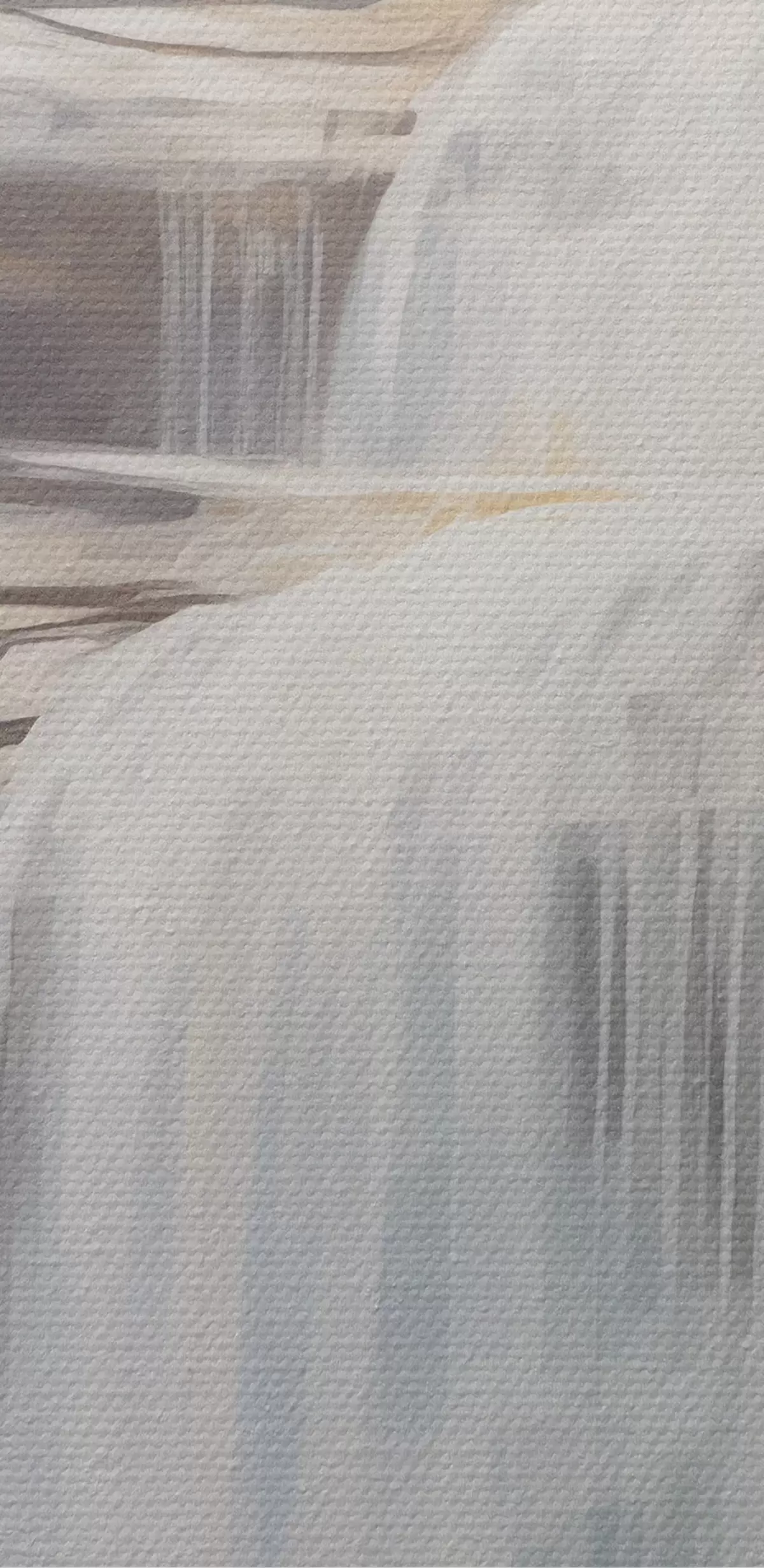 Țesătura fină a firelor de pe această pânză seamănă cu suprafața pânzelor artiștilor profesioniști.
