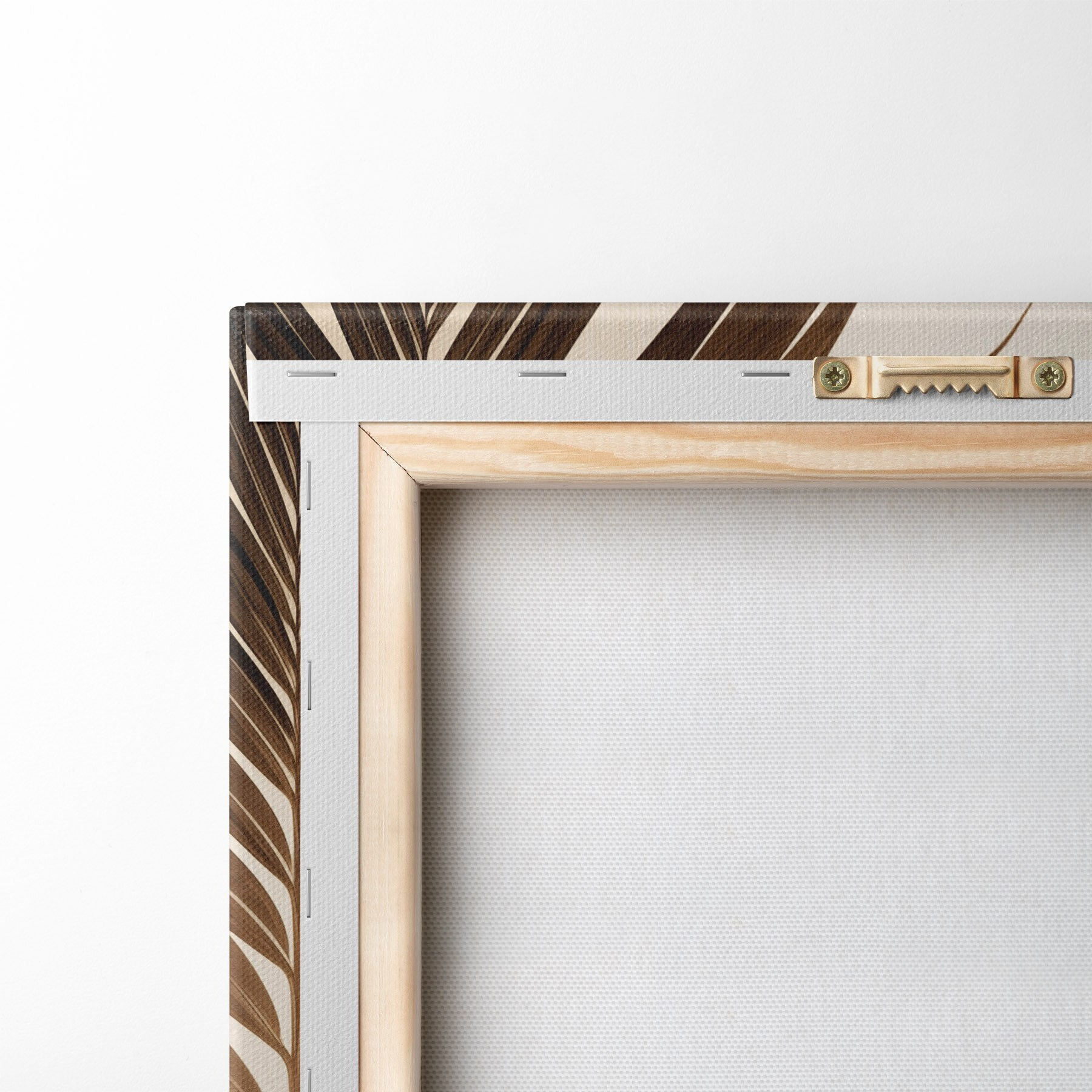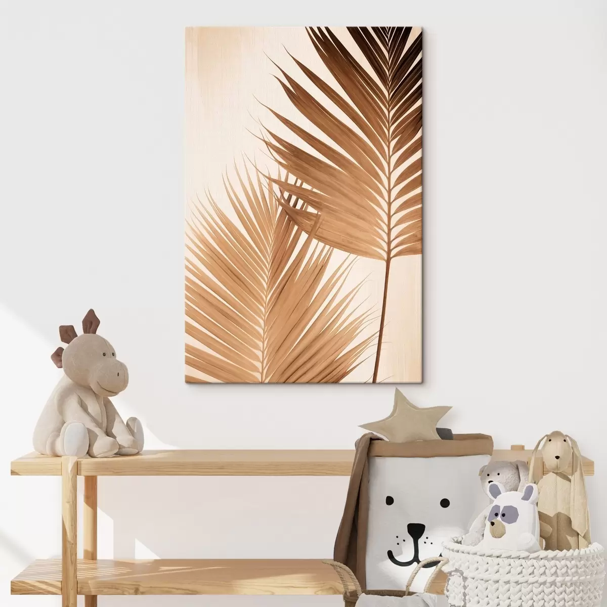 Pictură pe pânză Frunze de palmier în tonuri maronii, fundal neutru, stil minimalist, iluminare naturală, atmosferă tropicală Nr s46274