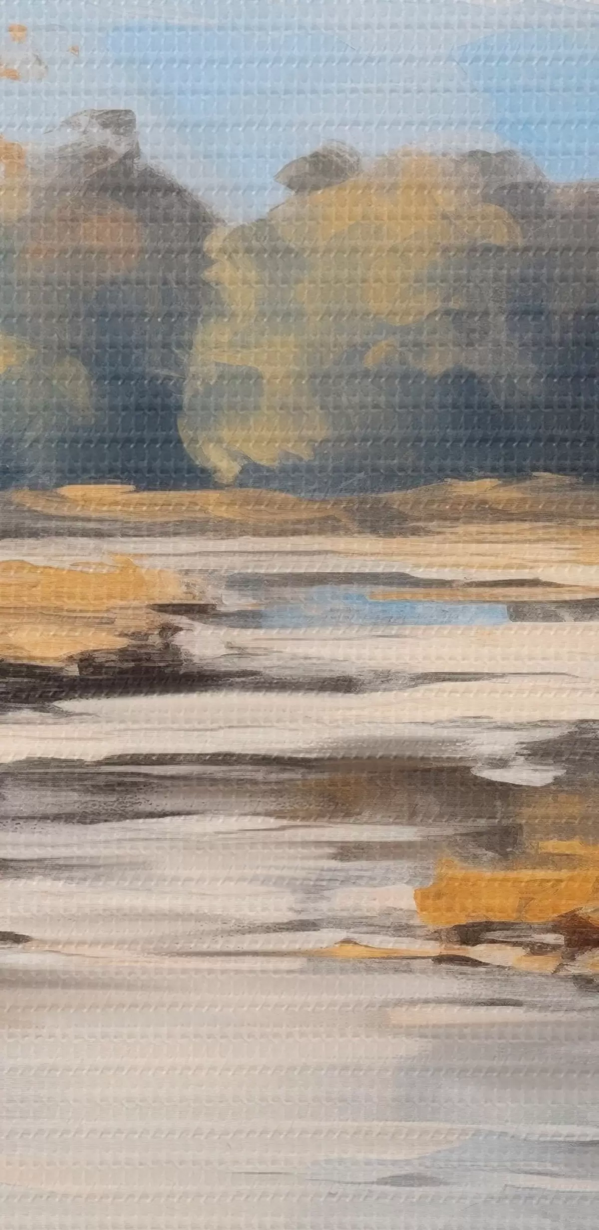 Țesătura fină a firelor de pe această pânză seamănă cu suprafața pânzelor artiștilor profesioniști.