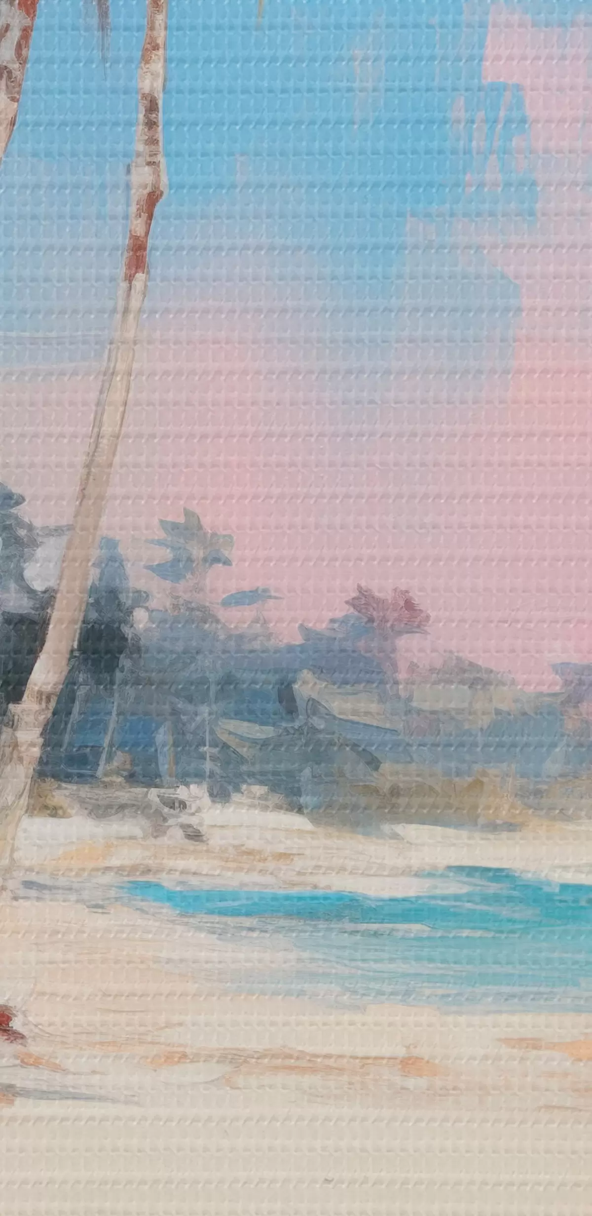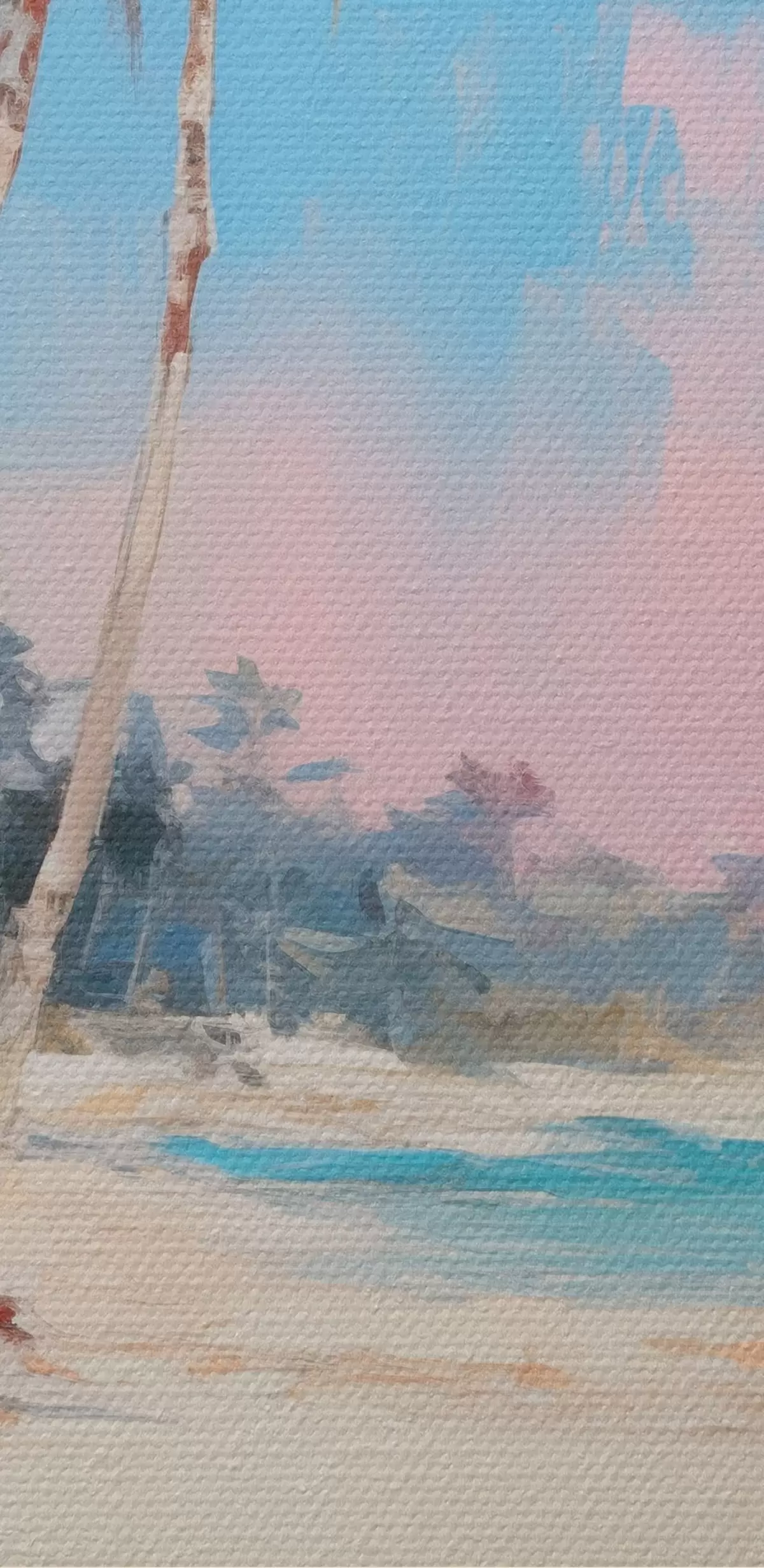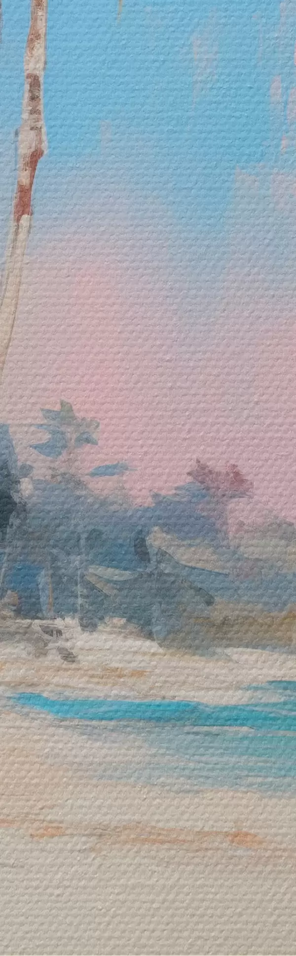 Țesătura fină a firelor de pe această pânză seamănă cu suprafața pânzelor artiștilor profesioniști.