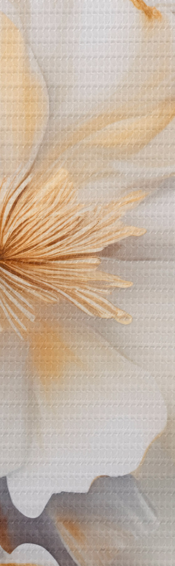 Pictură pe pânză Flori albe cu detalii galbene, petale cu umbre subtile, fundal deschis cu efect marmorat subtil Nr s46292