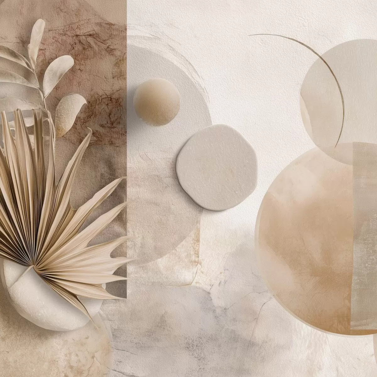 Tablouri Frunze de palmier uscate și cercuri 3D în tonuri de bej s46310