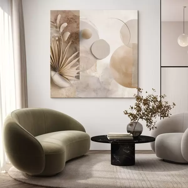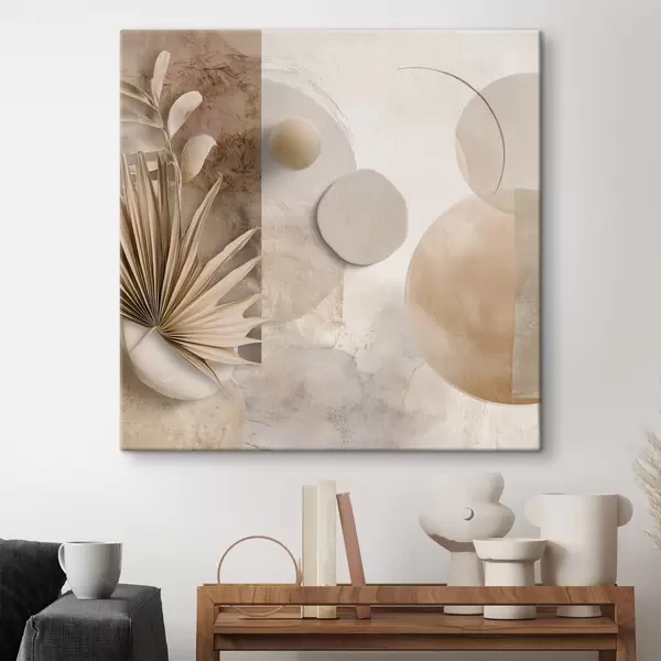 Pictură pe pânză Frunze de palmier uscate și cercuri 3D în tonuri de bej Nr s46310