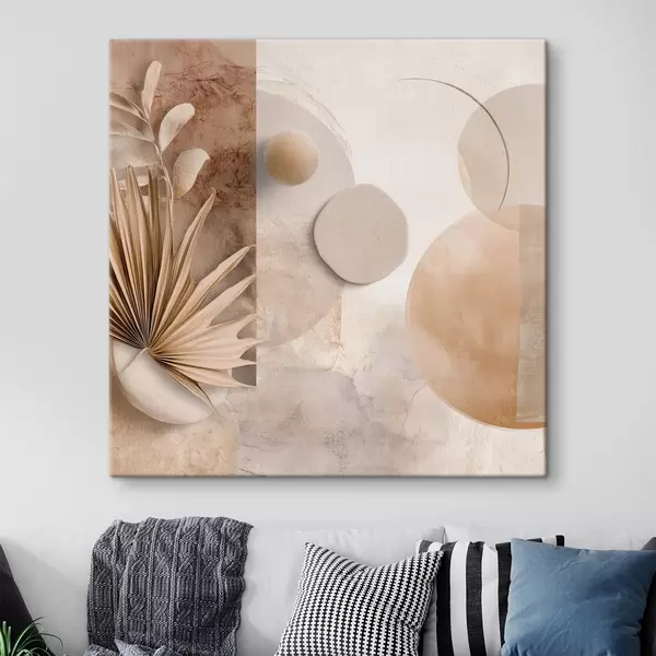 Pictură pe pânză Frunze de palmier uscate și cercuri 3D în tonuri de bej Nr s46310