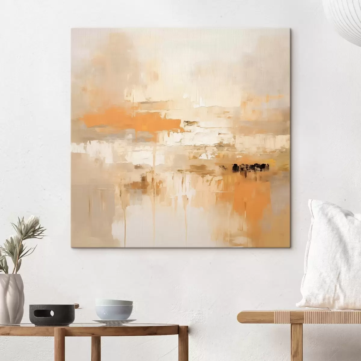 Tablouri Abstracție peisagistică în stilul picturii în ulei, cu tonuri de portocaliu și bej s46314