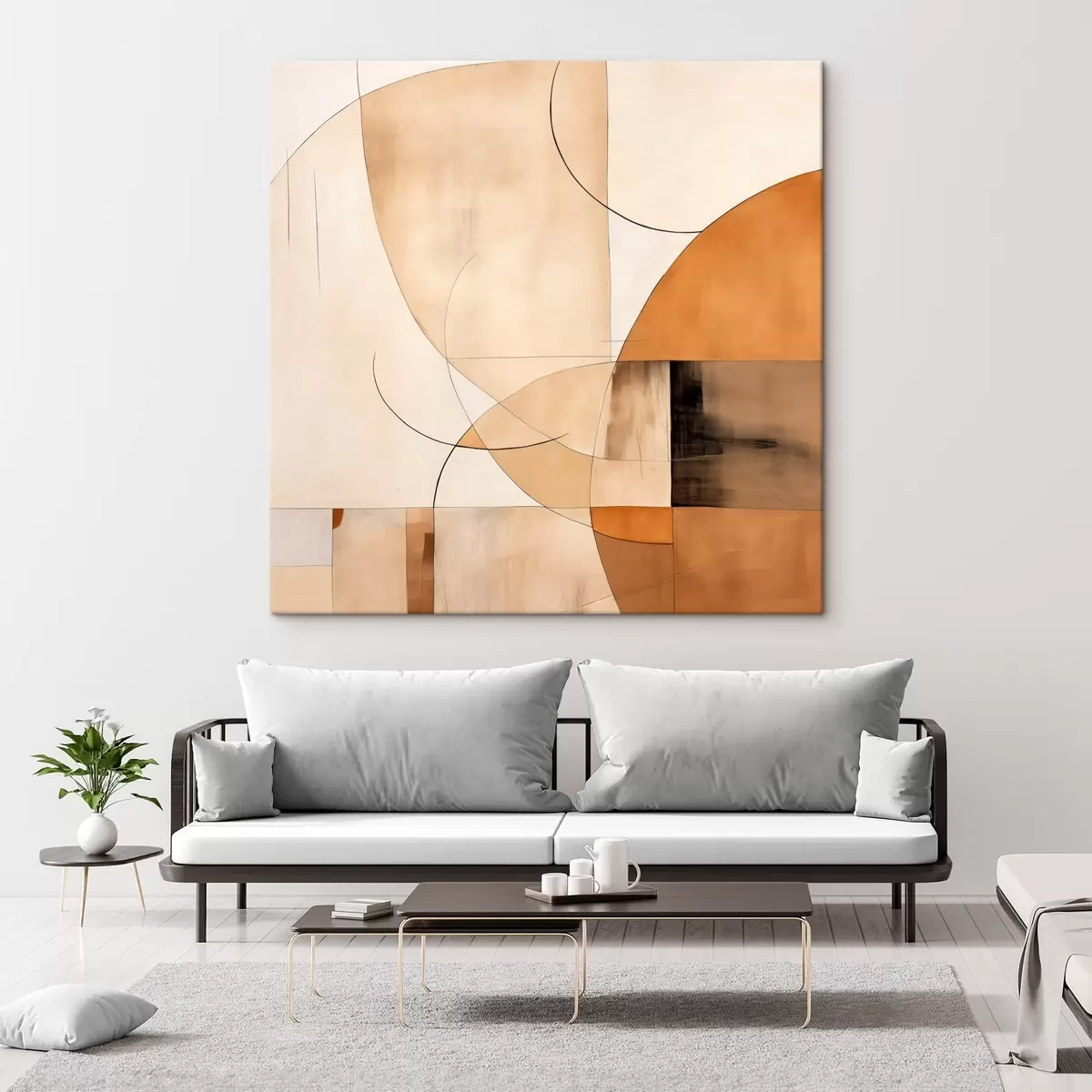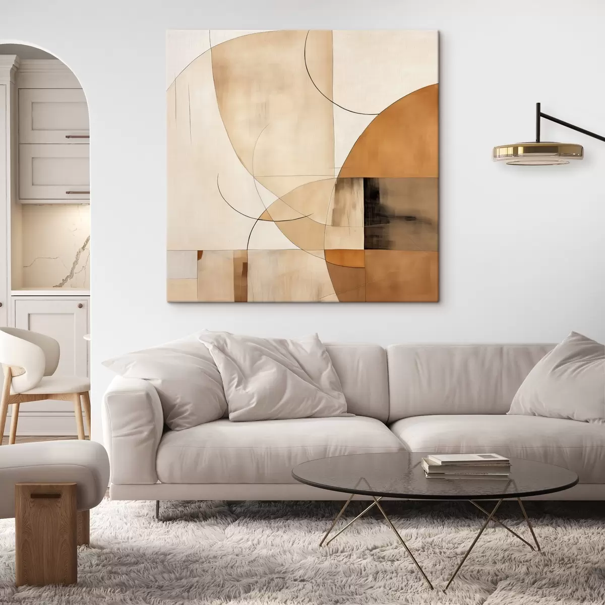 Pictură pe pânză Abstracție geometrică cu linii curbe și tonuri de bej Nr s46320