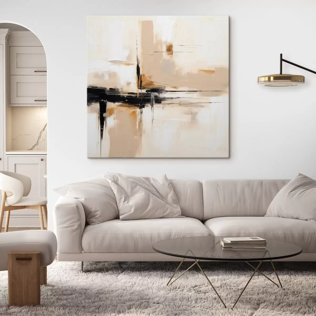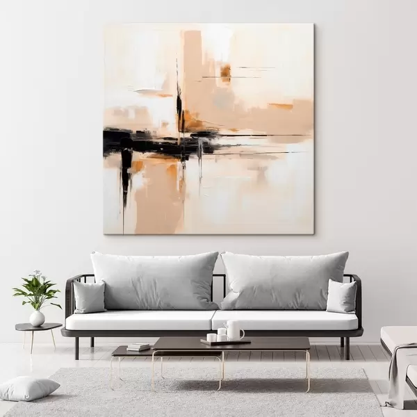 Pictură pe pânză Bej și negru, abstracție verticală în stil minimalist Nr s46326