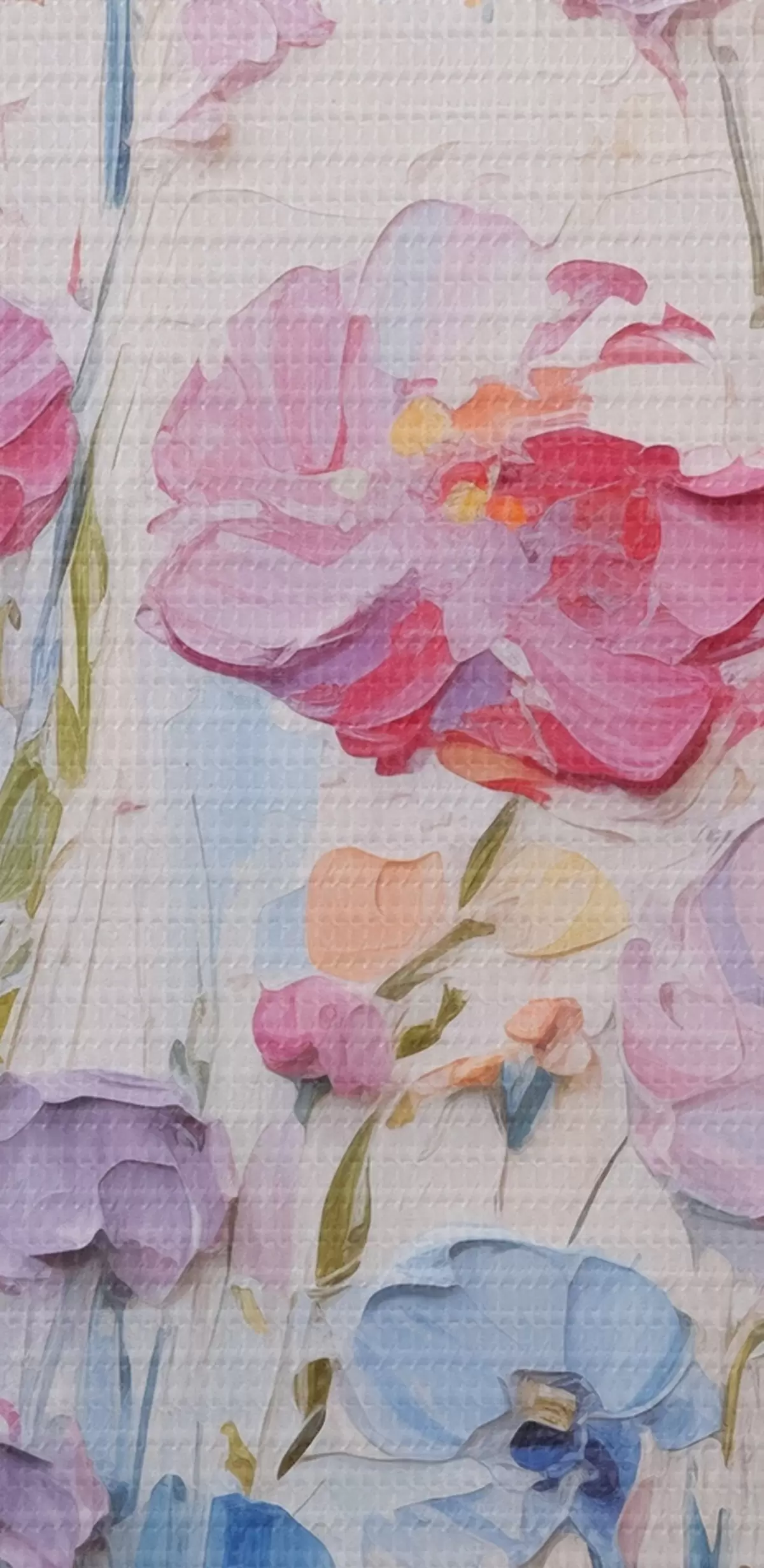 Trei tipuri de materiale sunt disponibile pentru comandă: Economic Canvas - un material dens și durabil pentru imprimarea digitală, identic cu pânza de pictor, suprafață impermeabilă, reproducere realistă a detaliilor, material cu granulație medie. Premium Canvas - textura seamănă cu cea a pânzei unui pictor (fire mici împletite). Reproducere moale, detaliată a imaginii pe o suprafață mată. Eco-Premium - țesătură 100% bumbac de înaltă calitate. Datorită fibrelor naturale de bumbac, materialul este durabil și rezistent la uzură. Reproducere excelentă a culorilor și a detaliilor.