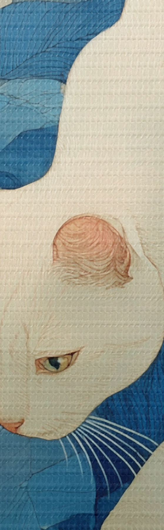Țesătura fină a firelor de pe această pânză seamănă cu suprafața pânzelor artiștilor profesioniști.
